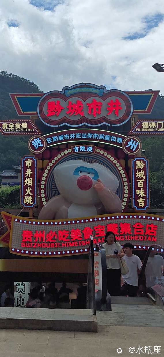 古城对面街里有蜜雪冰城、沪上阿姨、古茗和库迪咖啡,还有绝味鸭脖、正新鸡排各种粉店和肠粉店等,吃东西还是很方便的。街边的小店有冰粉冰浆卖,7元一份,比在贵阳吃的便宜多了,看到老板现加水果、冰块和糯米打的,但是打得没有贵阳大店的细腻,估计那些连锁店是用大机器打的。连着吃了两天,芒果味和青瓜味的,感觉还是水果的好吃,青瓜味的太淡了,不甜。