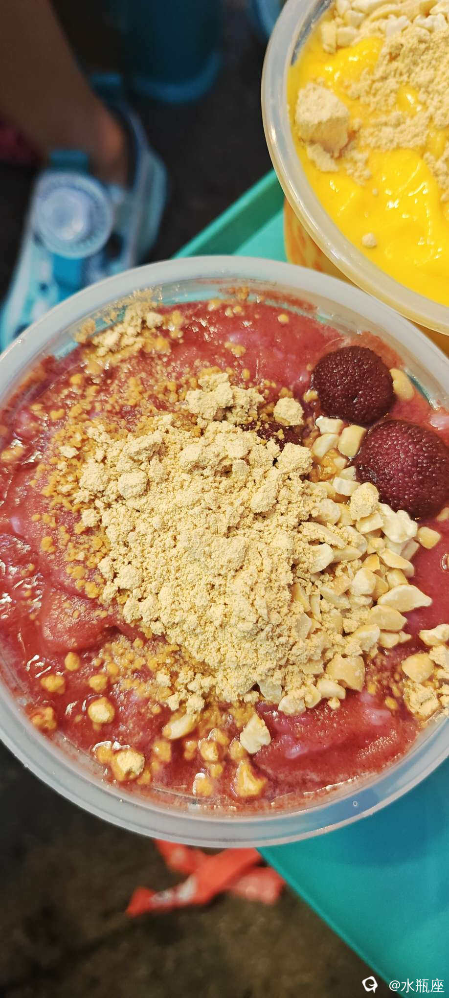 晚餐后逛逛青云市集,去吃了美团上好评比较多的巧八角冰浆。冰浆差不多就是加了糯米打的水果刨冰,点了芒果和杨梅味的。