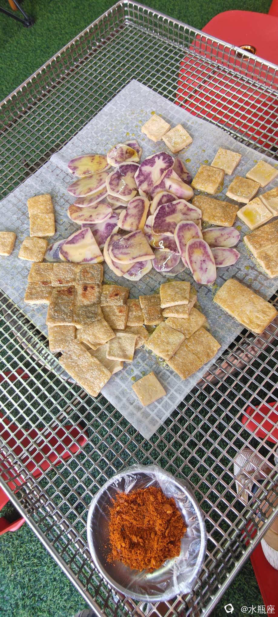 六盘水出名的还有小豆腐,古城里很多小店和路边摊就放个炭炉和烧烤架给客人自己烤着吃,豆腐4毛钱一块,没臭味的。我家孩子喜欢吃豆腐和马铃薯。紫色心的土豆叫乌洋芋,感觉和普通土豆味道一样的。