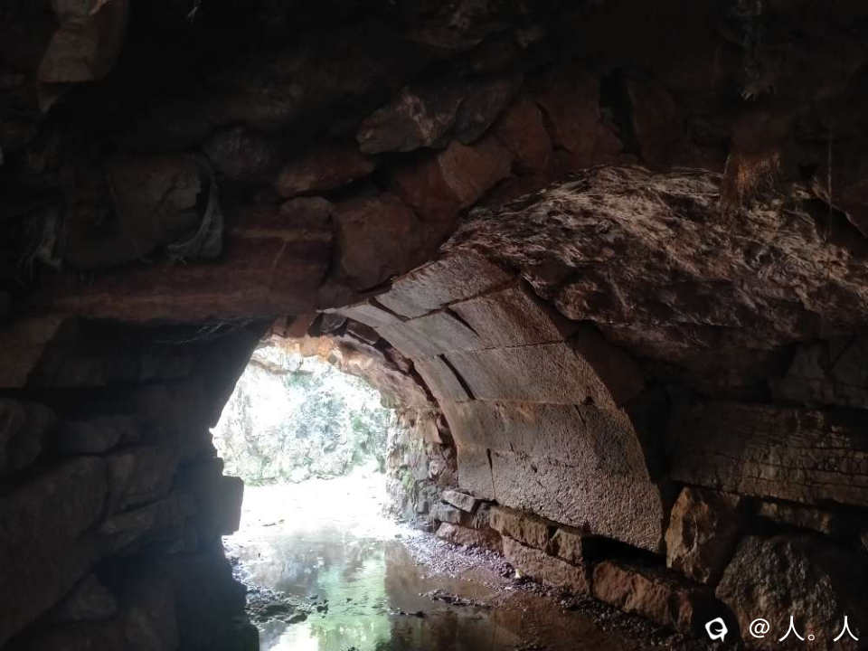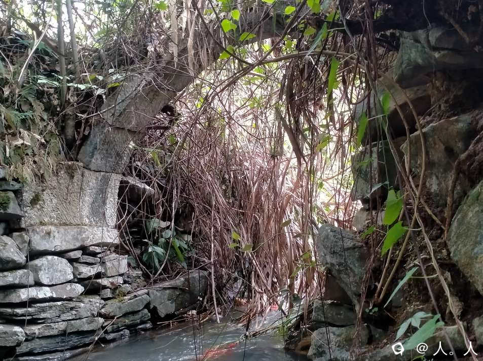 下到涵洞里面才看得到这个两米宽的古桥。