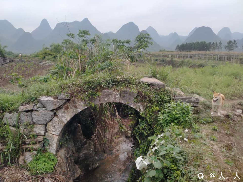 高圩头村东北角的一座古桥,村里的狗子跑过来抢镜头。