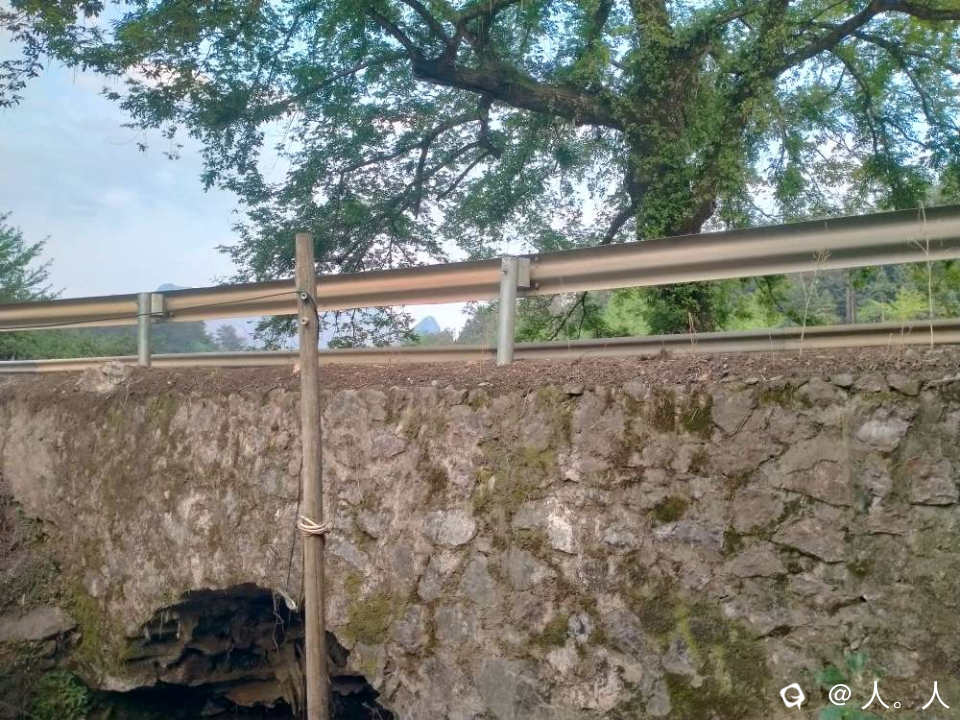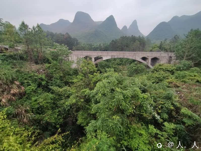 由于两边都建了桥,原来的地貌已经完全改变,古桥两头都是虚土浮石,只能在侧面往下俯看到一小段高耸的圆拱,恐高者谨慎!