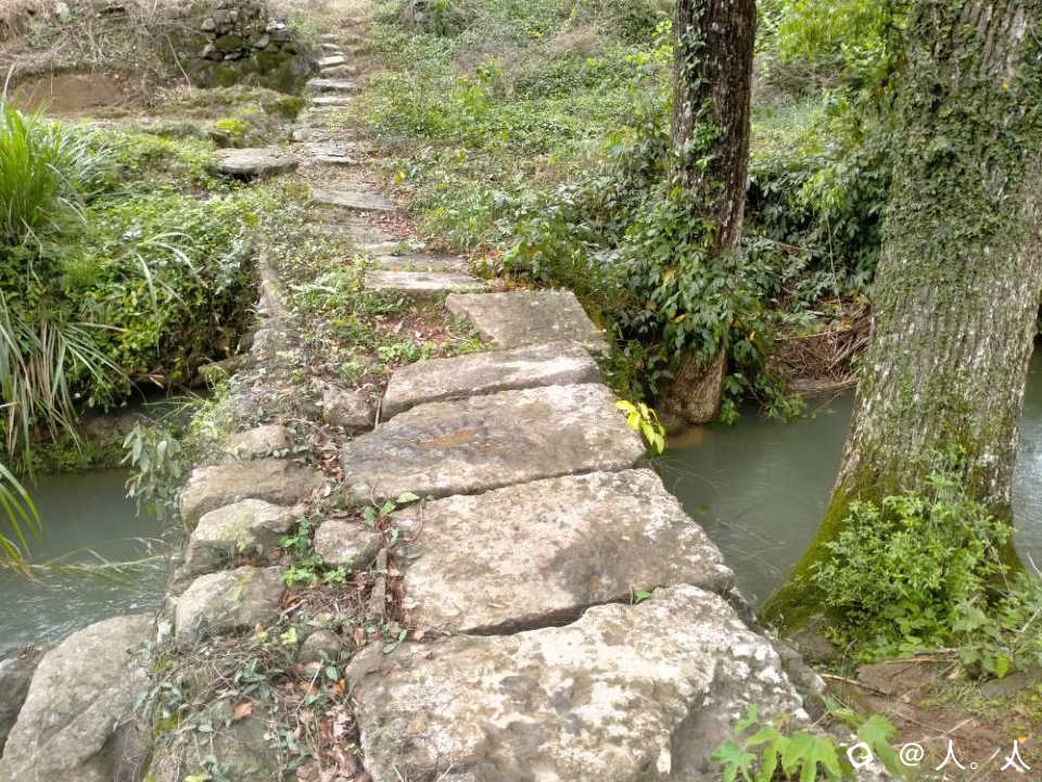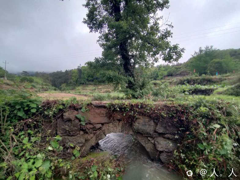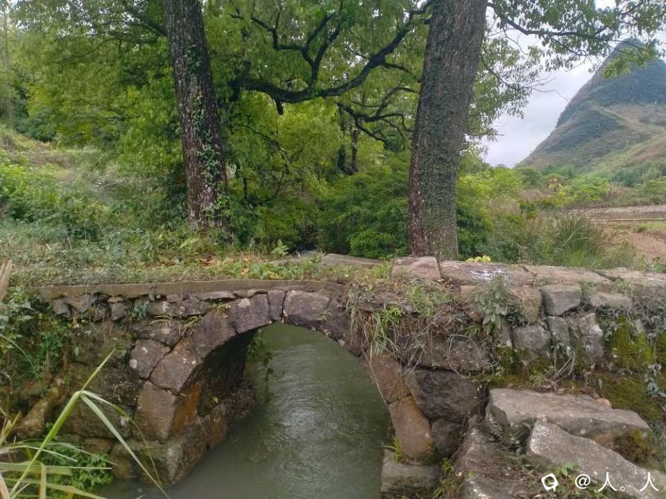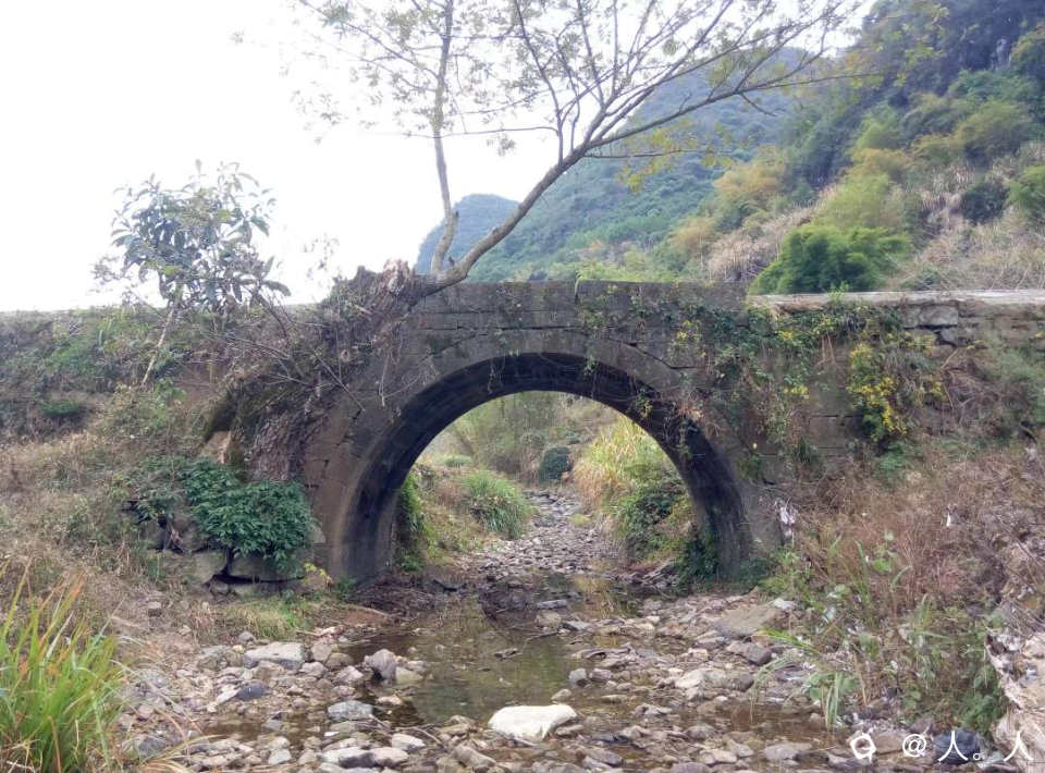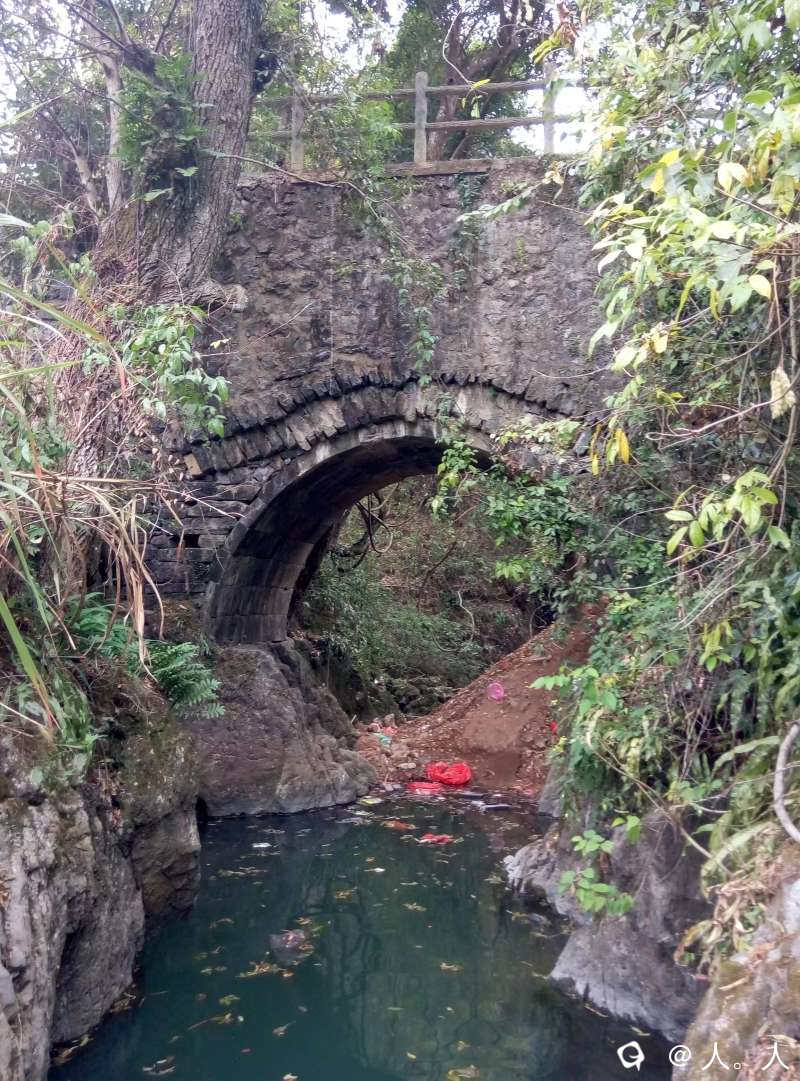 富家塘到水冲,路边的石拱桥,看石路的方向是通往盘上村。