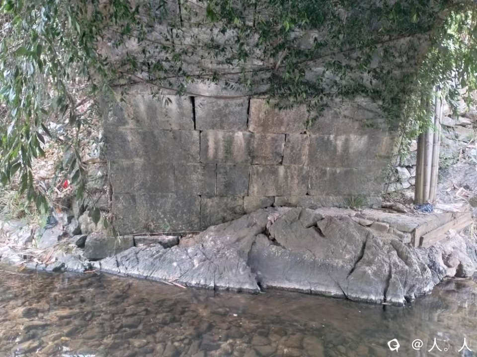 沿下坪溪的山坳两棵桂花树走两公里小石路,在腰古岭水库西边一处小溪看到一个石拱桥遗址,被冲毁没多久。