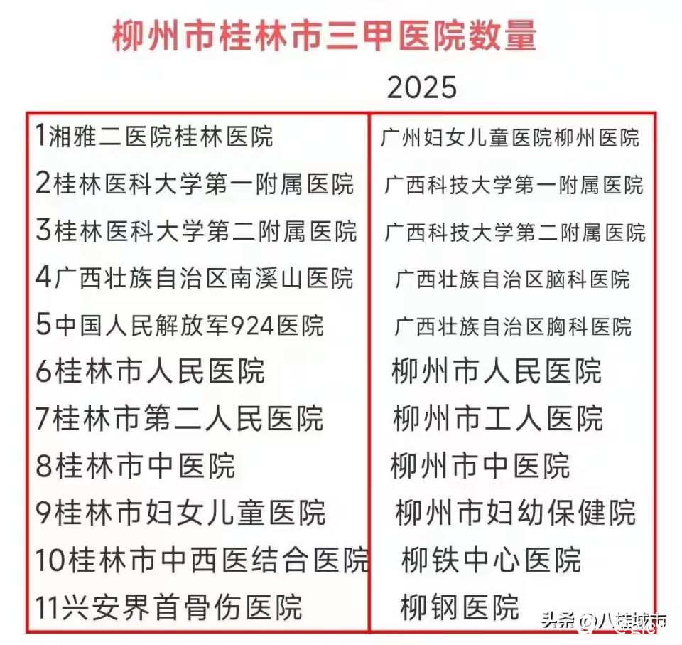 [新闻爆料] 旗鼓相当桂林市柳州市各有三甲医院11家