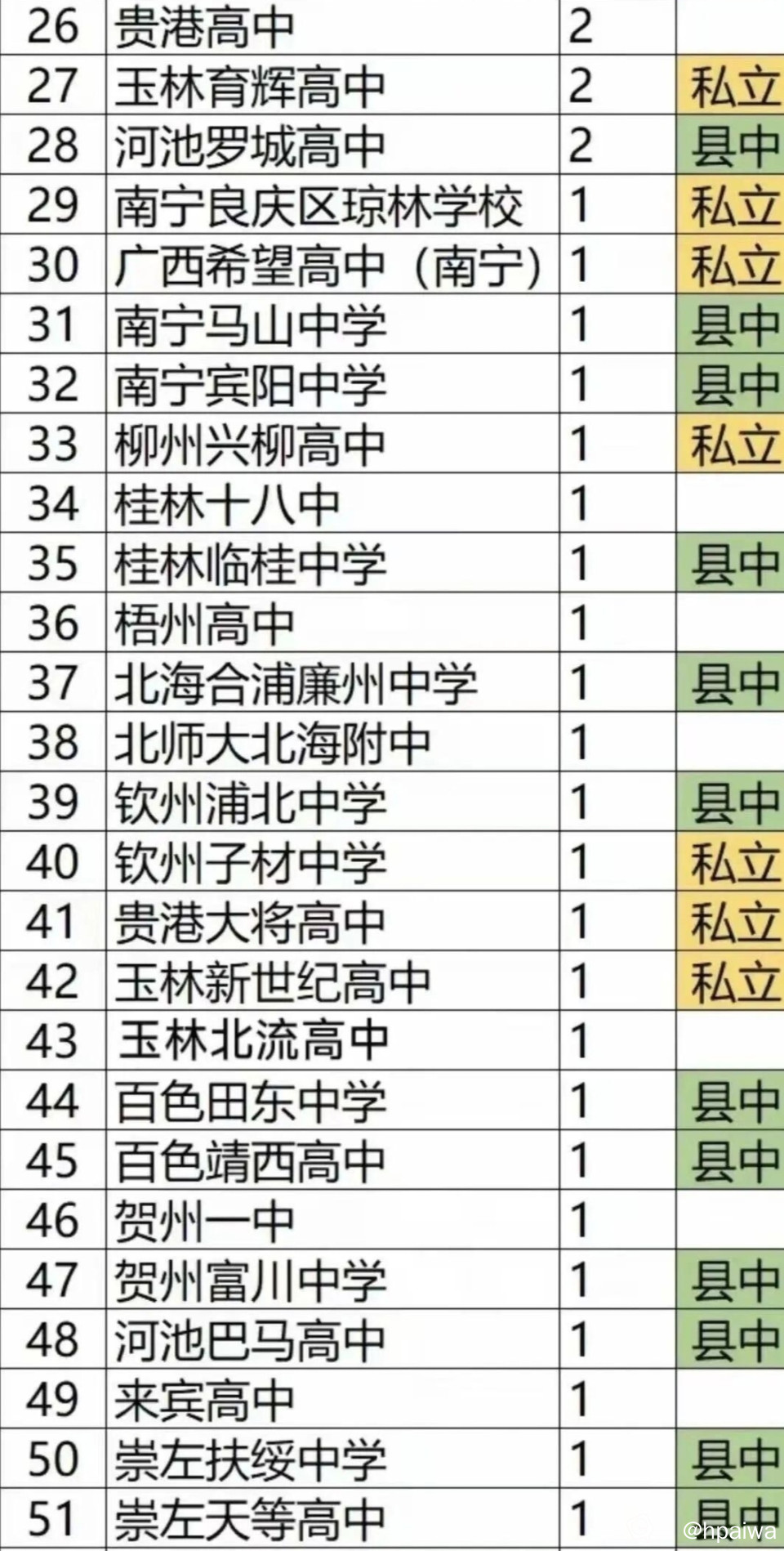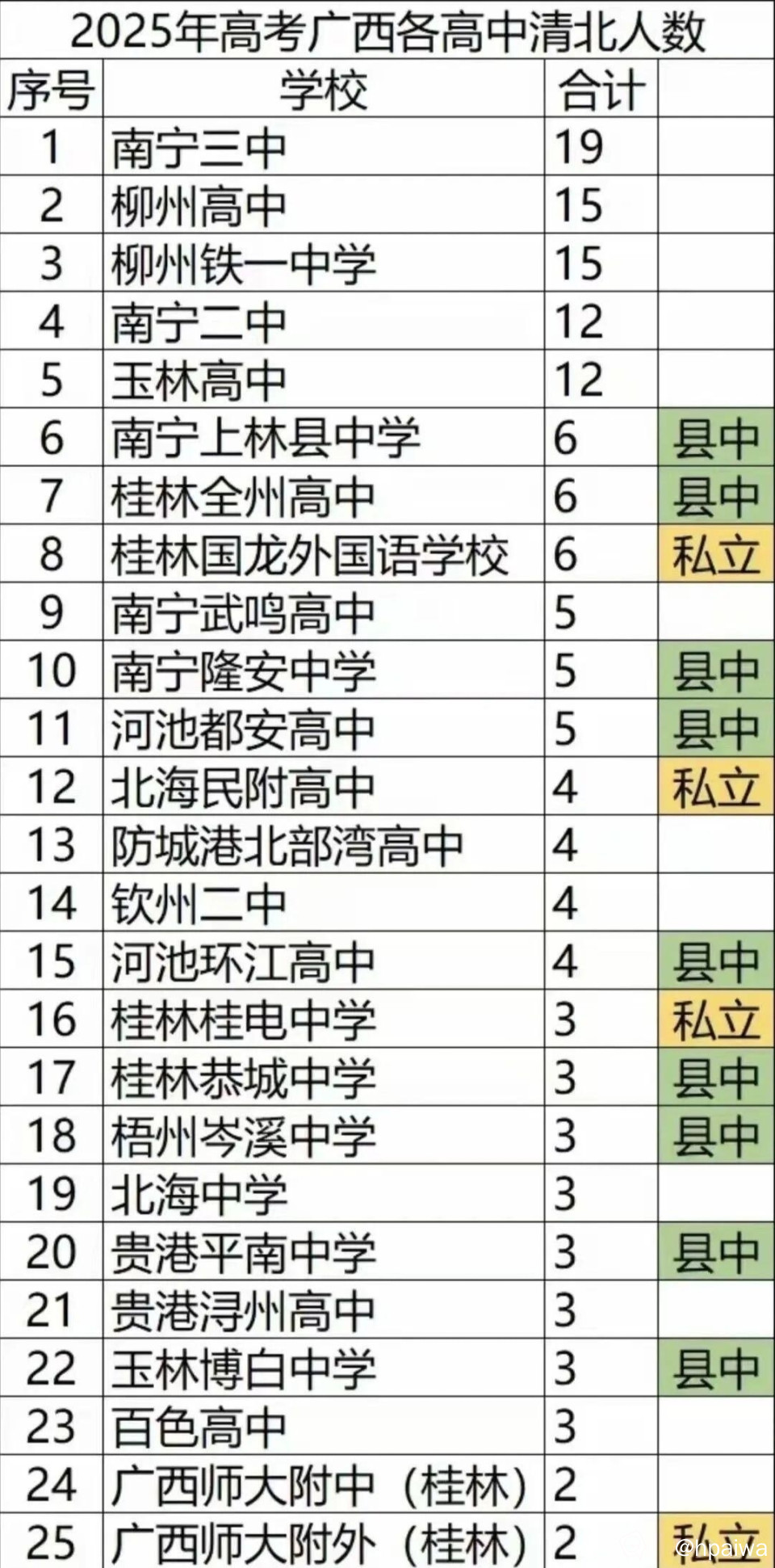 [新闻爆料] 网传2025年高考广西各高中清北人数汇总