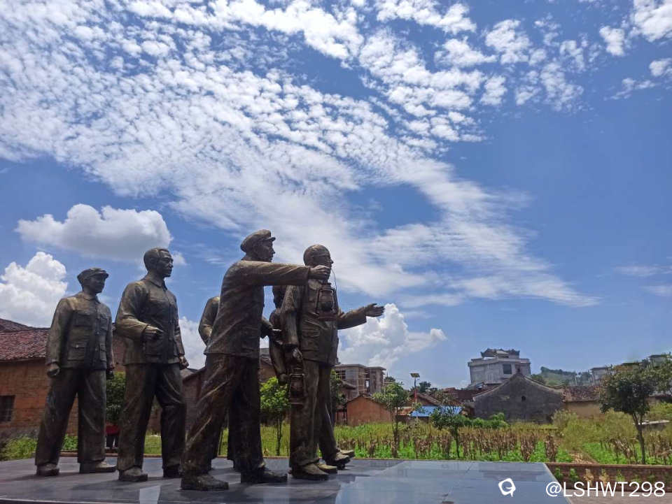故居前,以“四盏马灯“真实故事而树立的铜像广场。。。