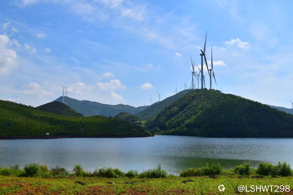 松柏花楼村附近。风电、水库,休闲步道,景色如此的beautiful。。。