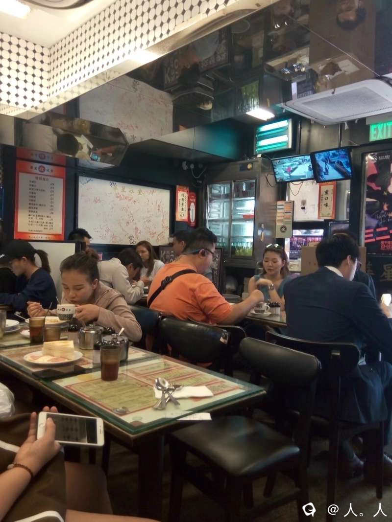 这是第三次到香港,我的小铝银带我去的旺角一家连锁茶餐厅,门口要排队统计菜单,里面墙上全是明星合影和留言。