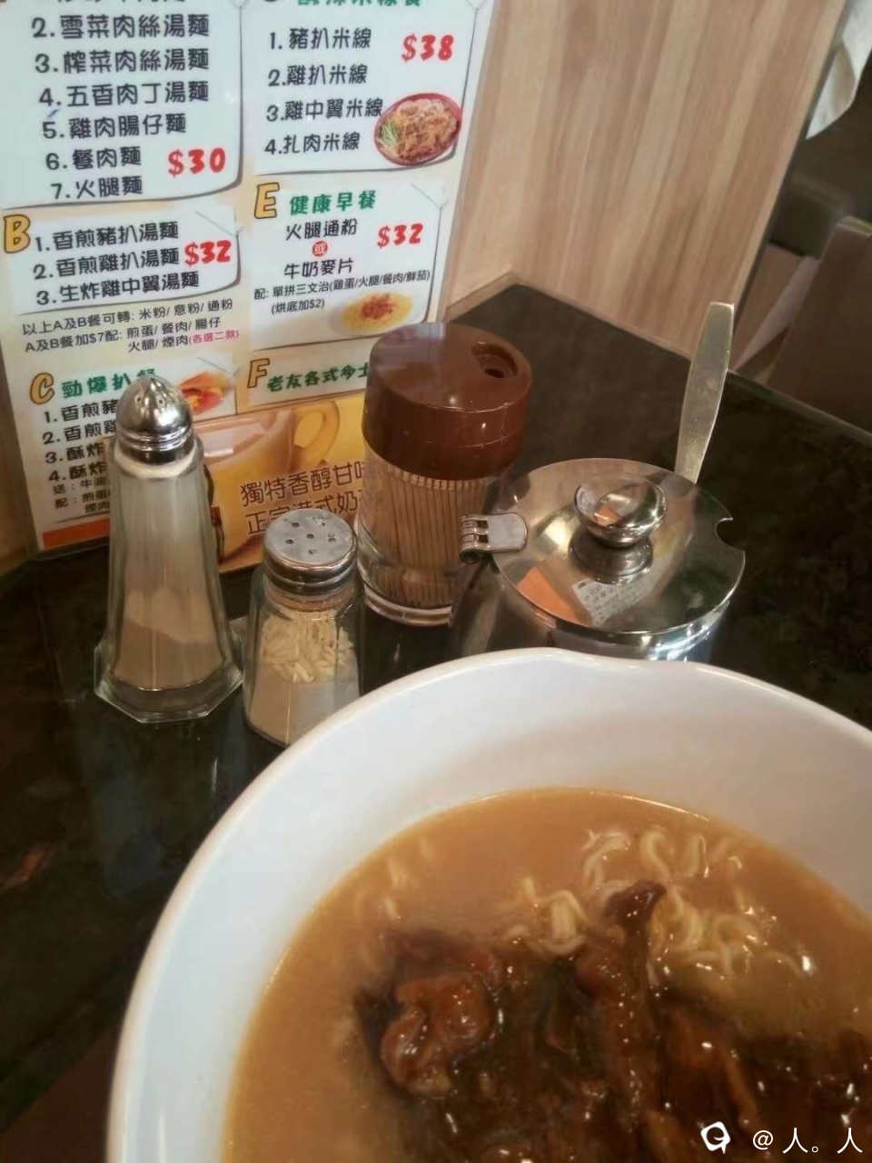 午夜时分独自一人在旺角老街区游荡,钵兰街的一家小餐馆里我完成了香港食物首秀:一碗汤面。