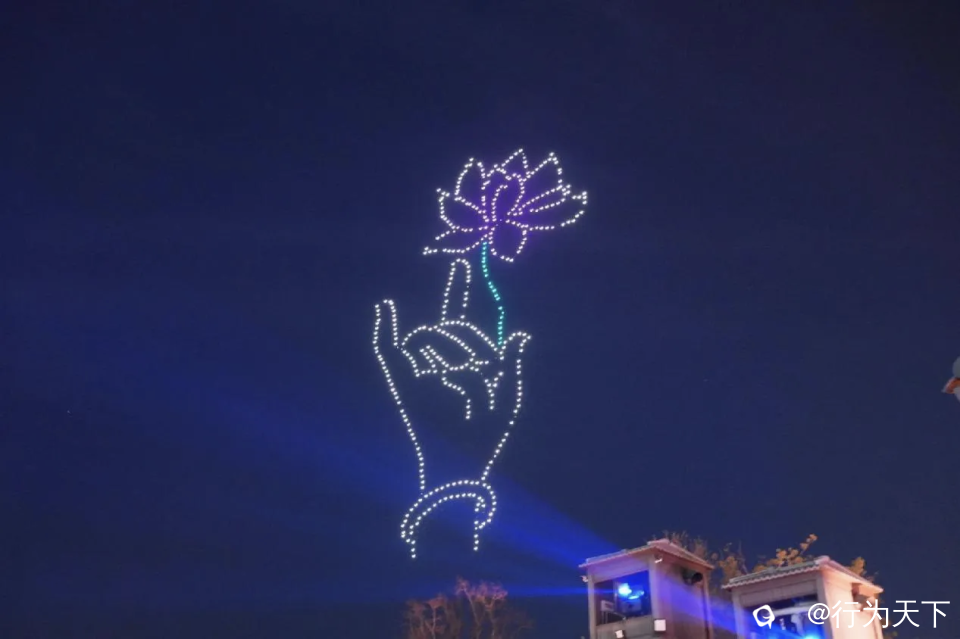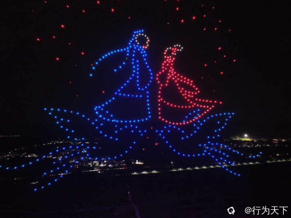 无人机以星空为画布,灯光为画笔,勾勒出精美的图案与文字,时而组成浪漫的心形,时而变幻出灵动的飞鸟,科技与艺术完美融合,为观众带来一场视觉奇观。