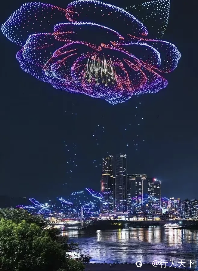 与此同时,近千架无人机光影秀也在夜空精彩上演。