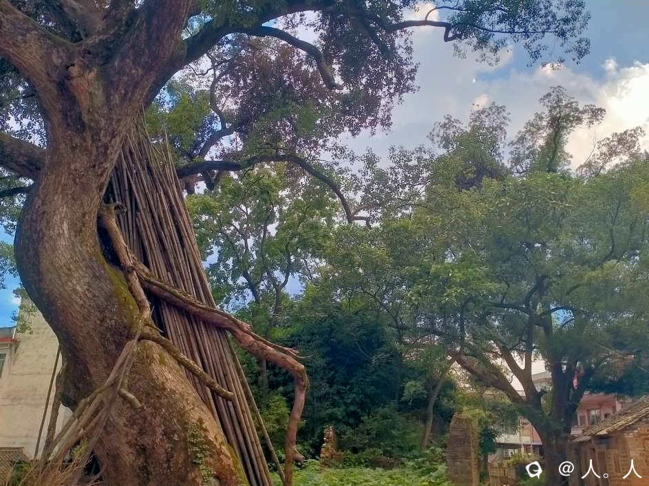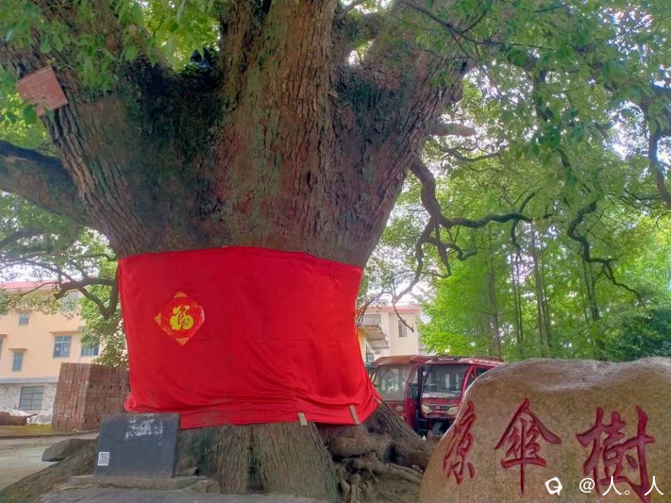 凉伞树村的古樟,荫庇一亩地,现树下新增了一些石碑之类。