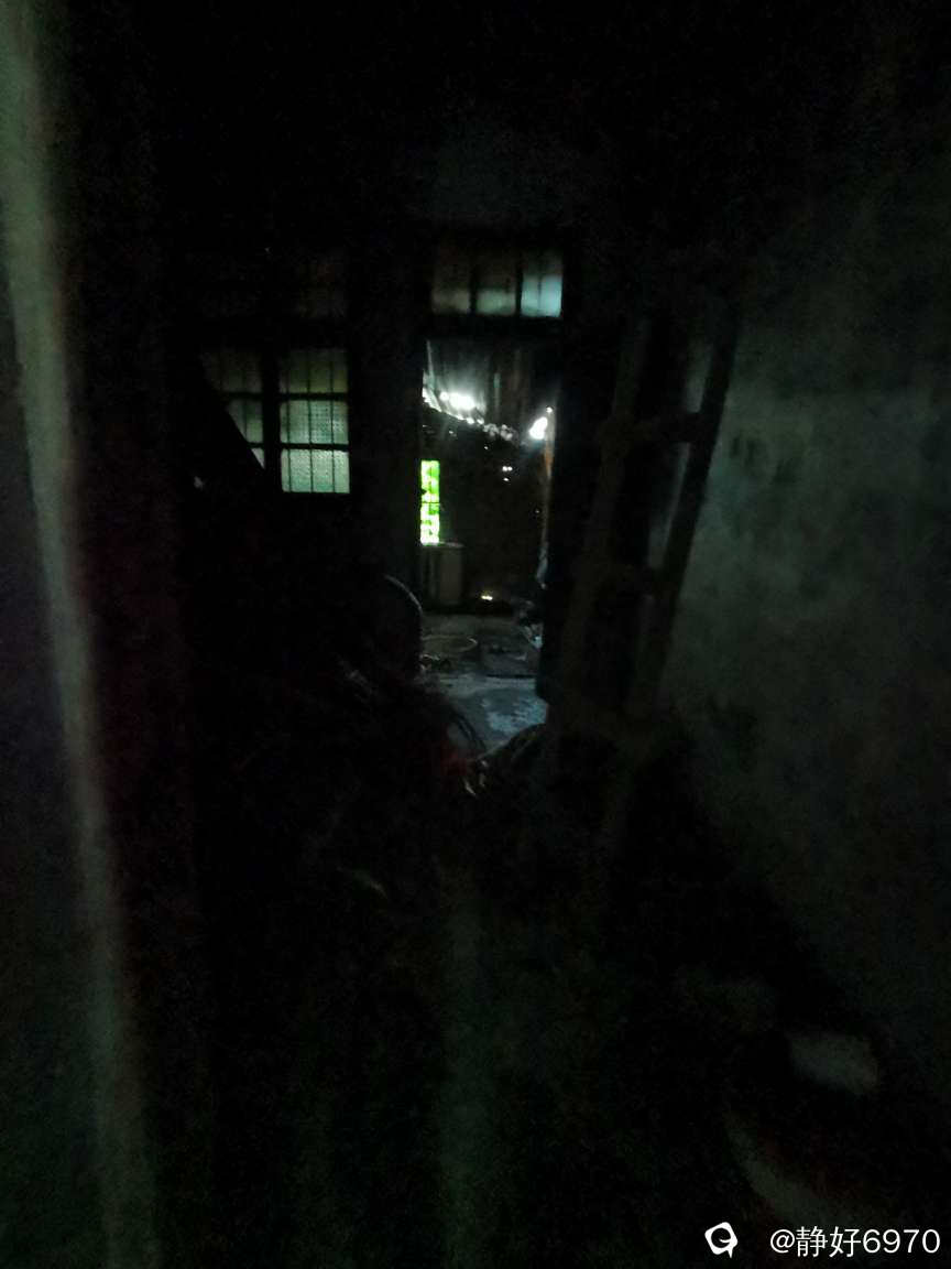 下图是白天拍的,伸手不见五指,黑麻麻的,唯一从窗户里透出一丝光。