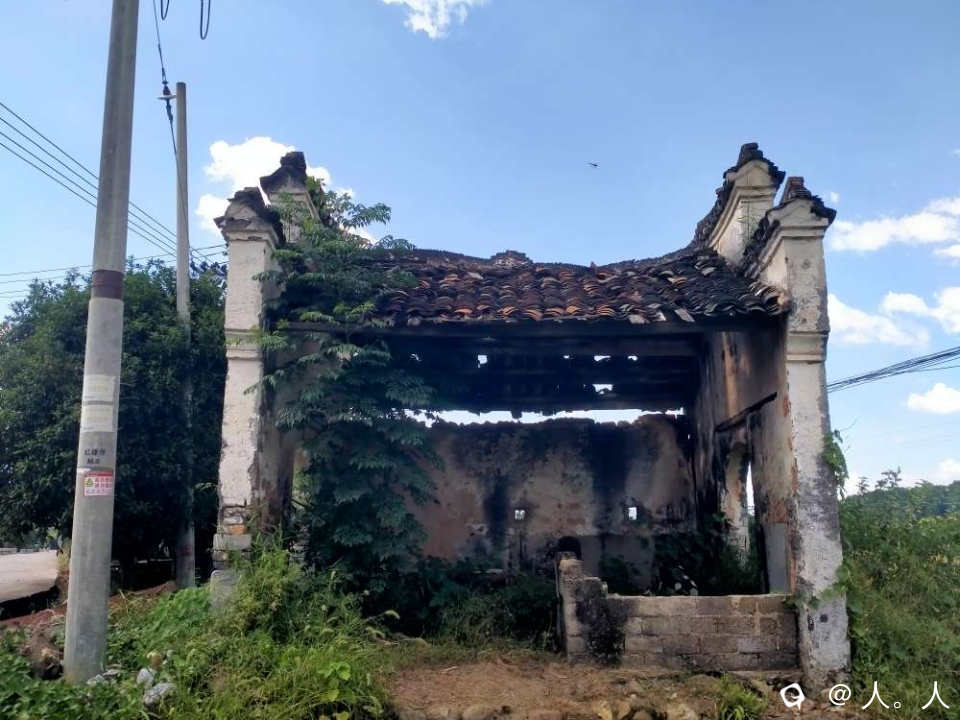 黄关镇到西山瑶族乡古道上的凉亭,在堰头上村水电站围墙外,黄土埋了半截。