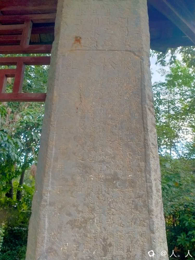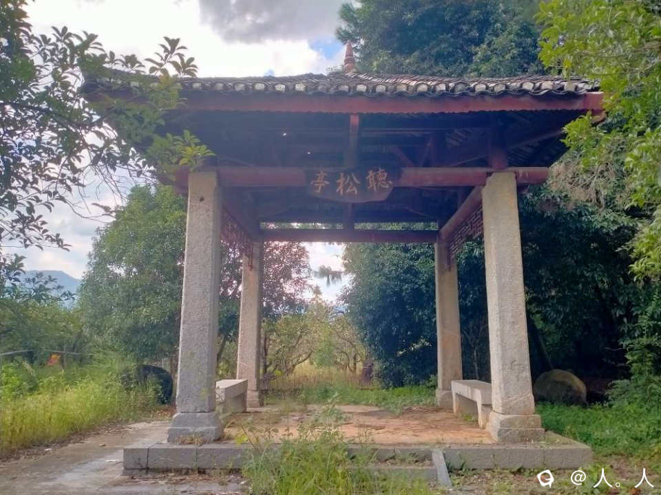 在路边一个小土坡上面看到一个乾隆年间的凉亭,名字很有诗意:听松亭。