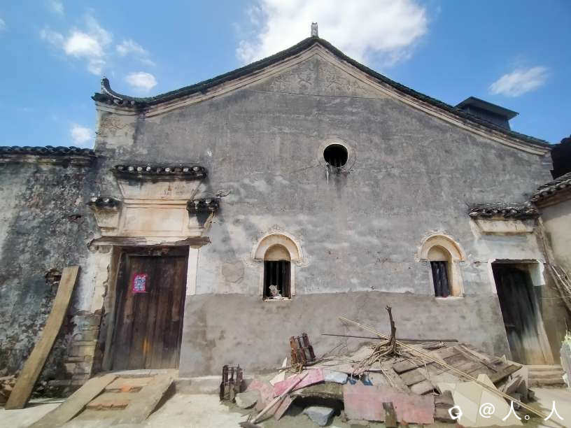 到新街大路坡,早几年的祠堂很破旧,重修后从侧面看那两对大锅耳墙非常漂亮。