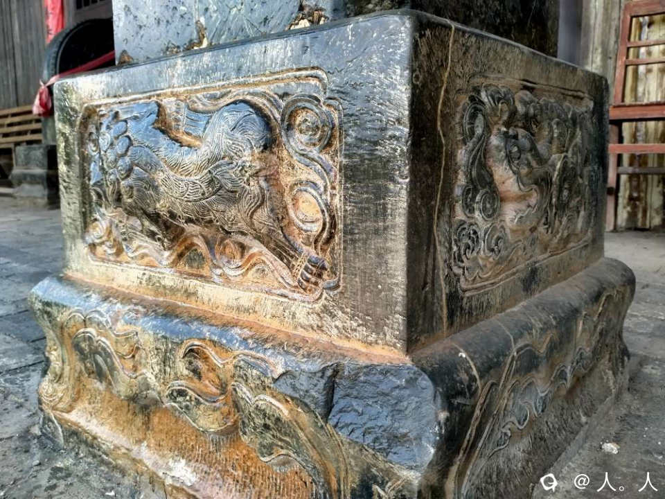 石立柱上方的两条一米石梁,五百年以上包浆。