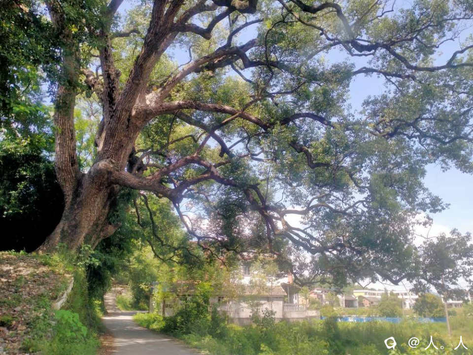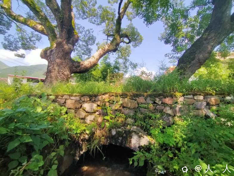 刘家东侧,一条栽有十几篼古樟的古代景观石道和石拱桥。