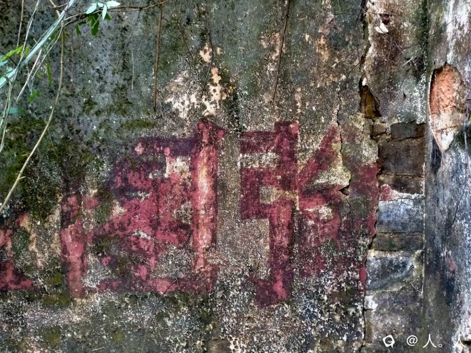 拨开藤蔓,内墙上的几幅大标语显示这座民国时期建造的凉亭在四十年前还是蛮闹热的。