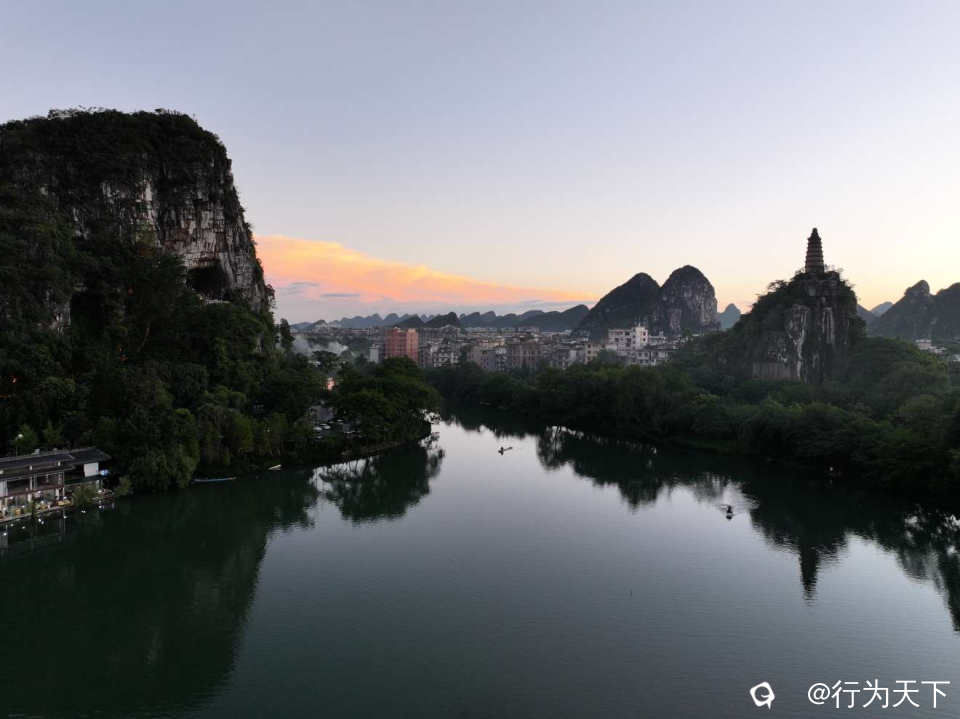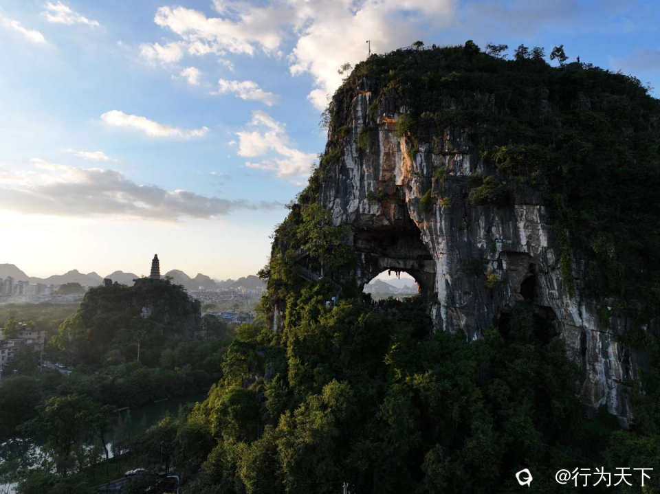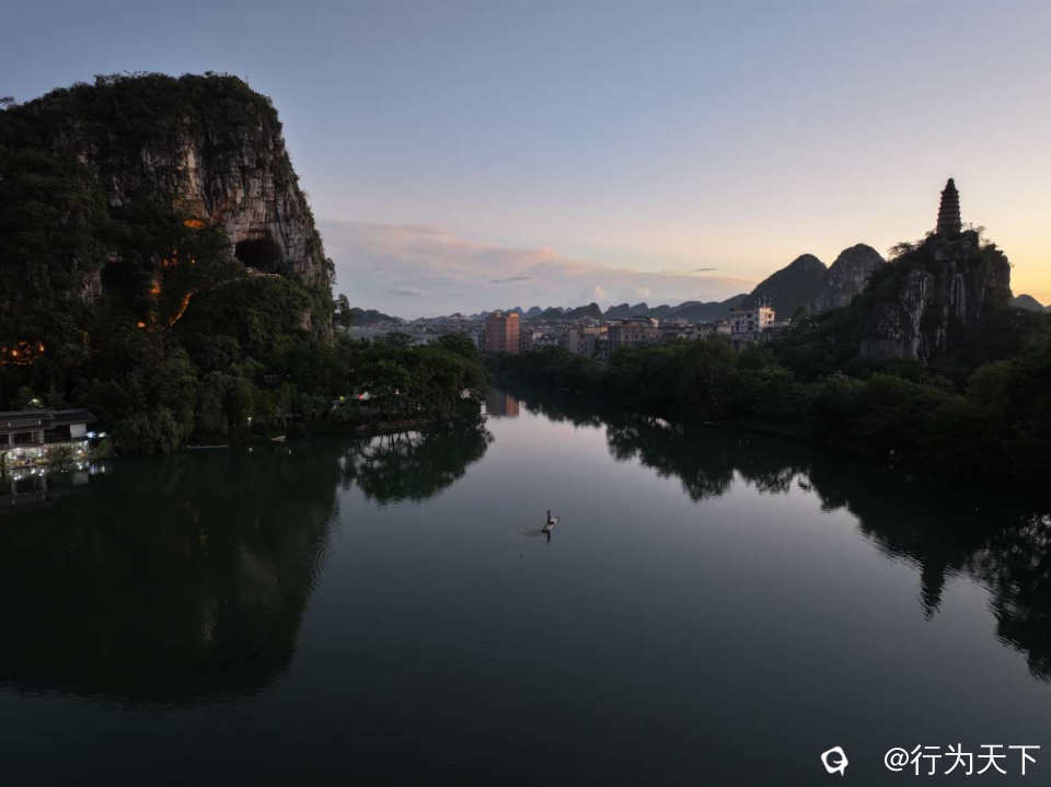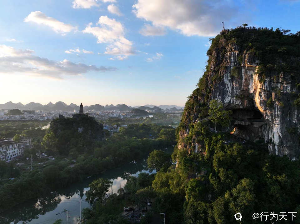 作为桂林城东南的天然胜境,穿山景区以穿山塔山为核心,缀以小东江蜿蜒环绕。