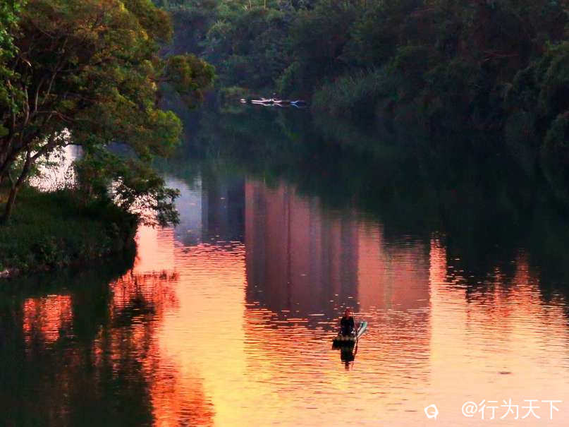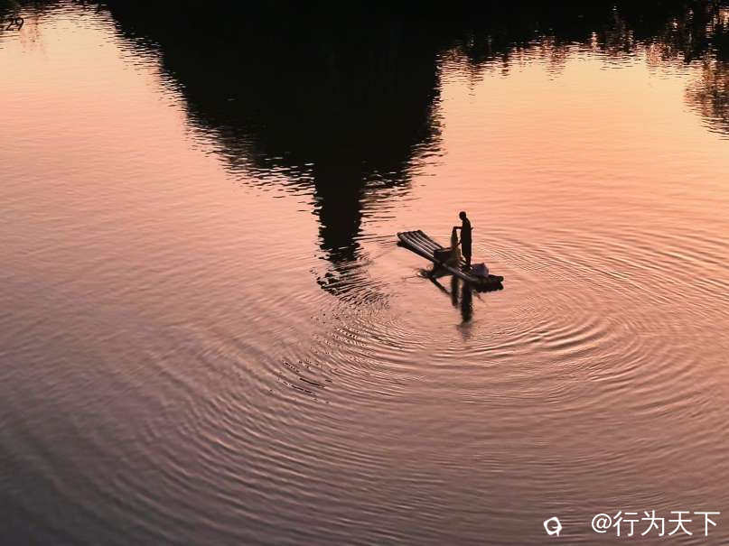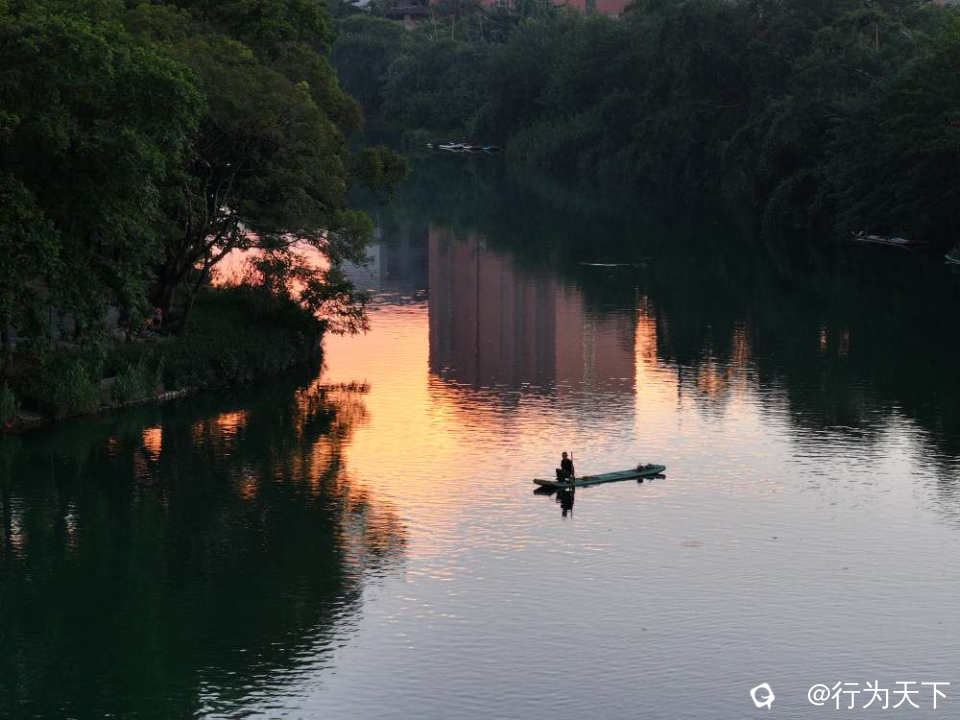粼波碎金的小东江上,竹筏载着鸬鹚渔人划开霞光。