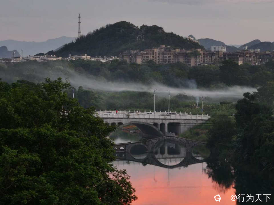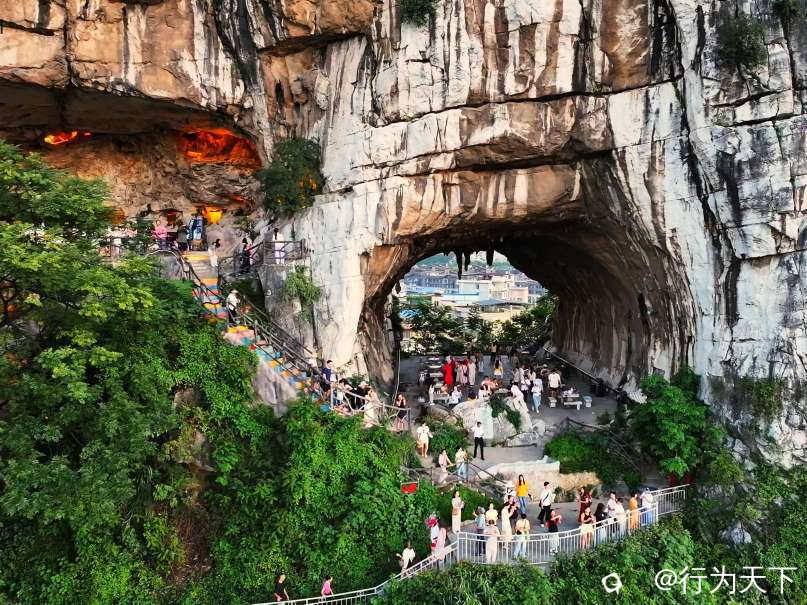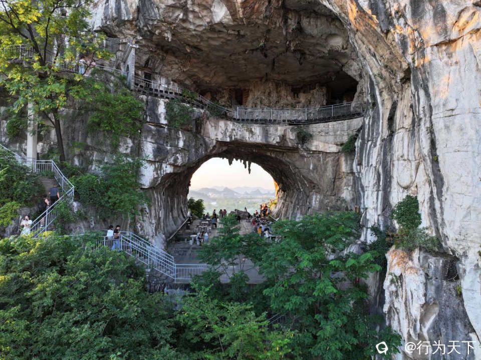 晚霞浸染天际时,穿山的轮廓被镀上一层金红。山体如天然屏风,中间巨型溶洞南北通透,仿佛天工凿就的月门。