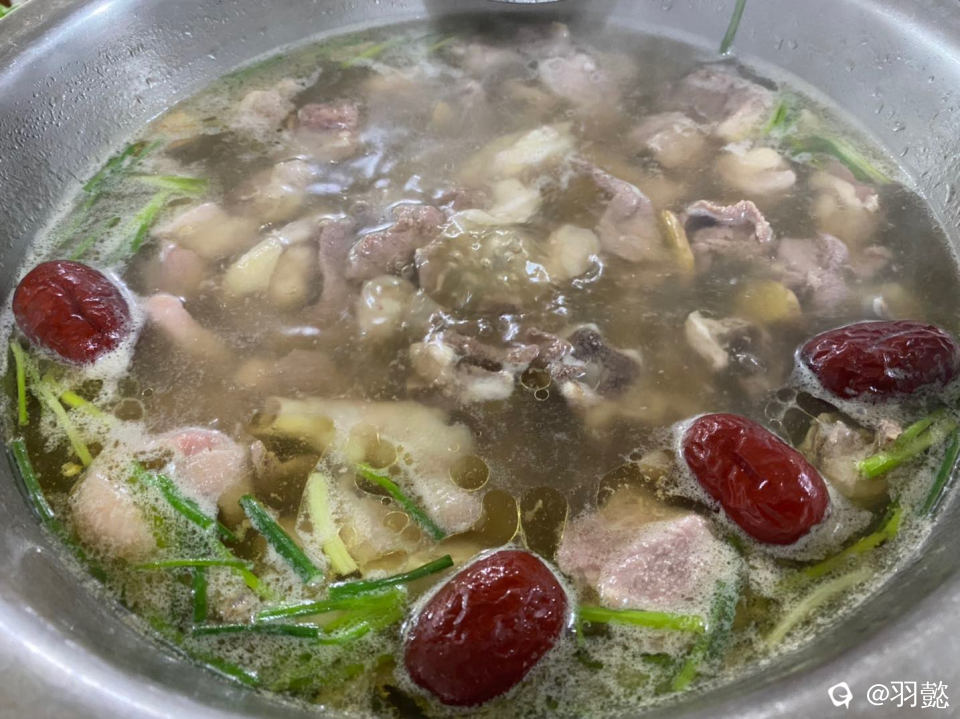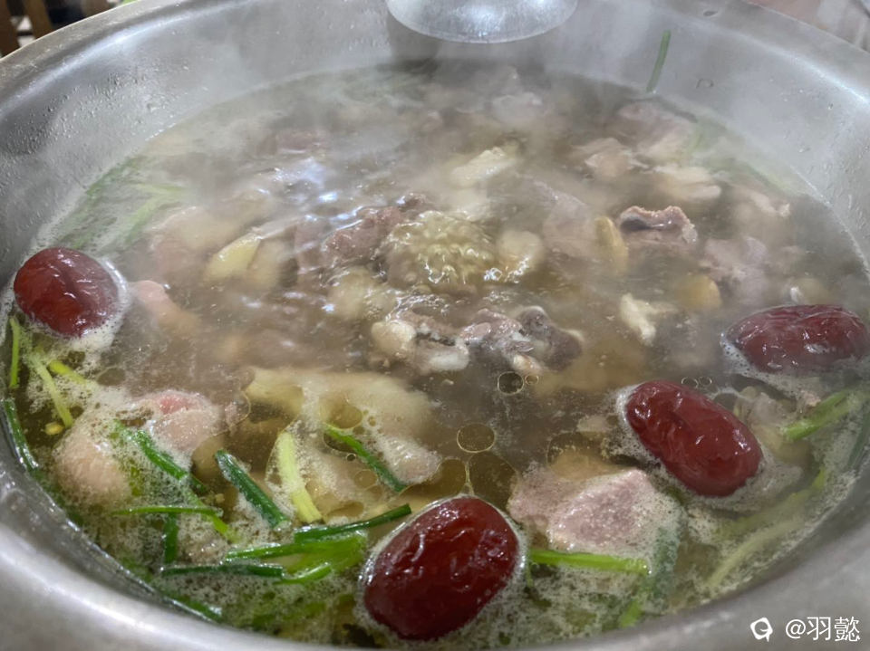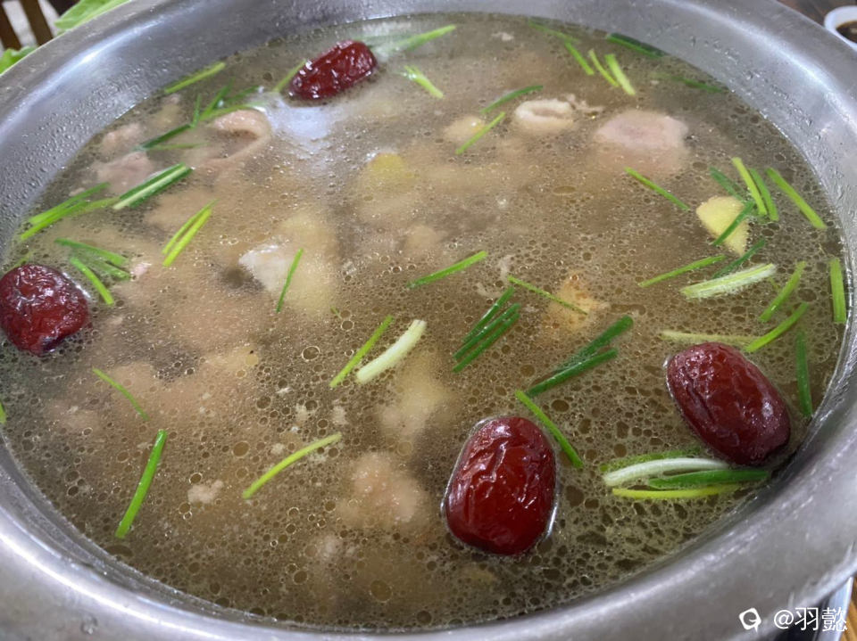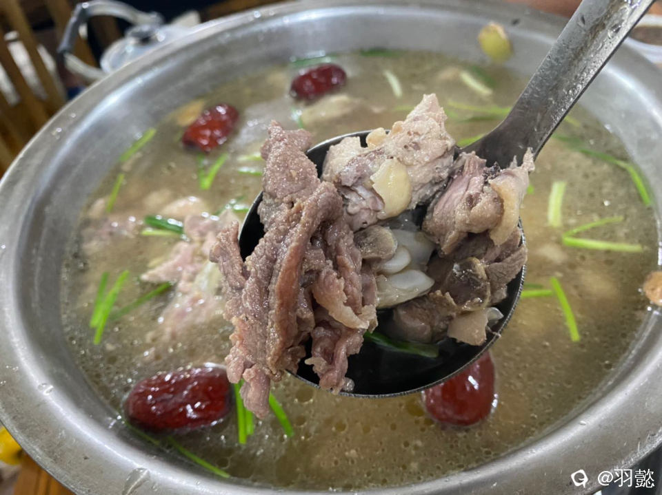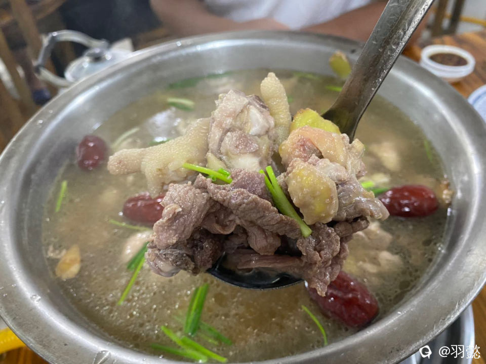 娃在田间地头玩累了 去我们的宝藏小店去品尝美食 牛肉鸡汤 汤鲜味美 肉多多哦 鸡肉和牛肉一起打汤