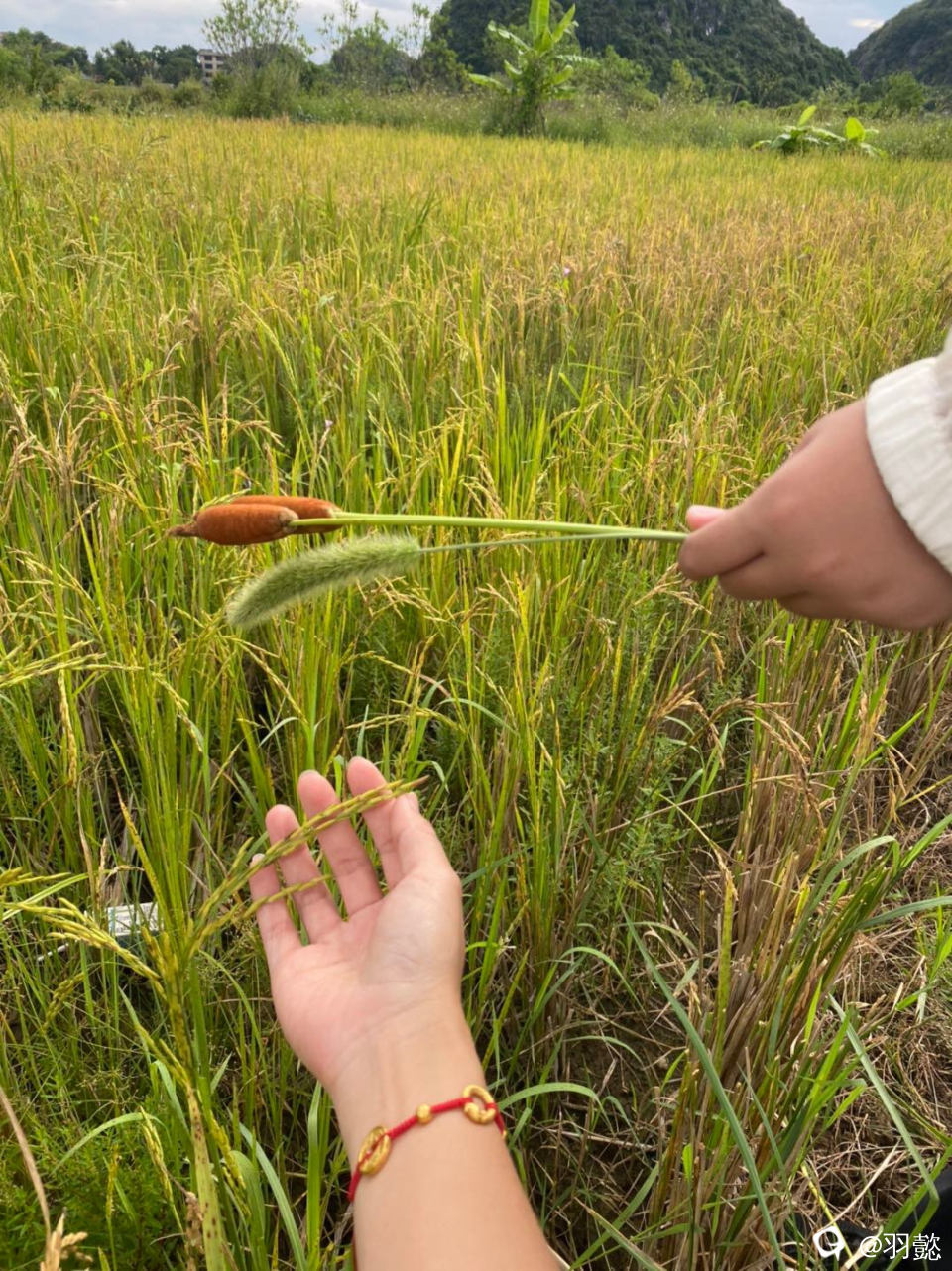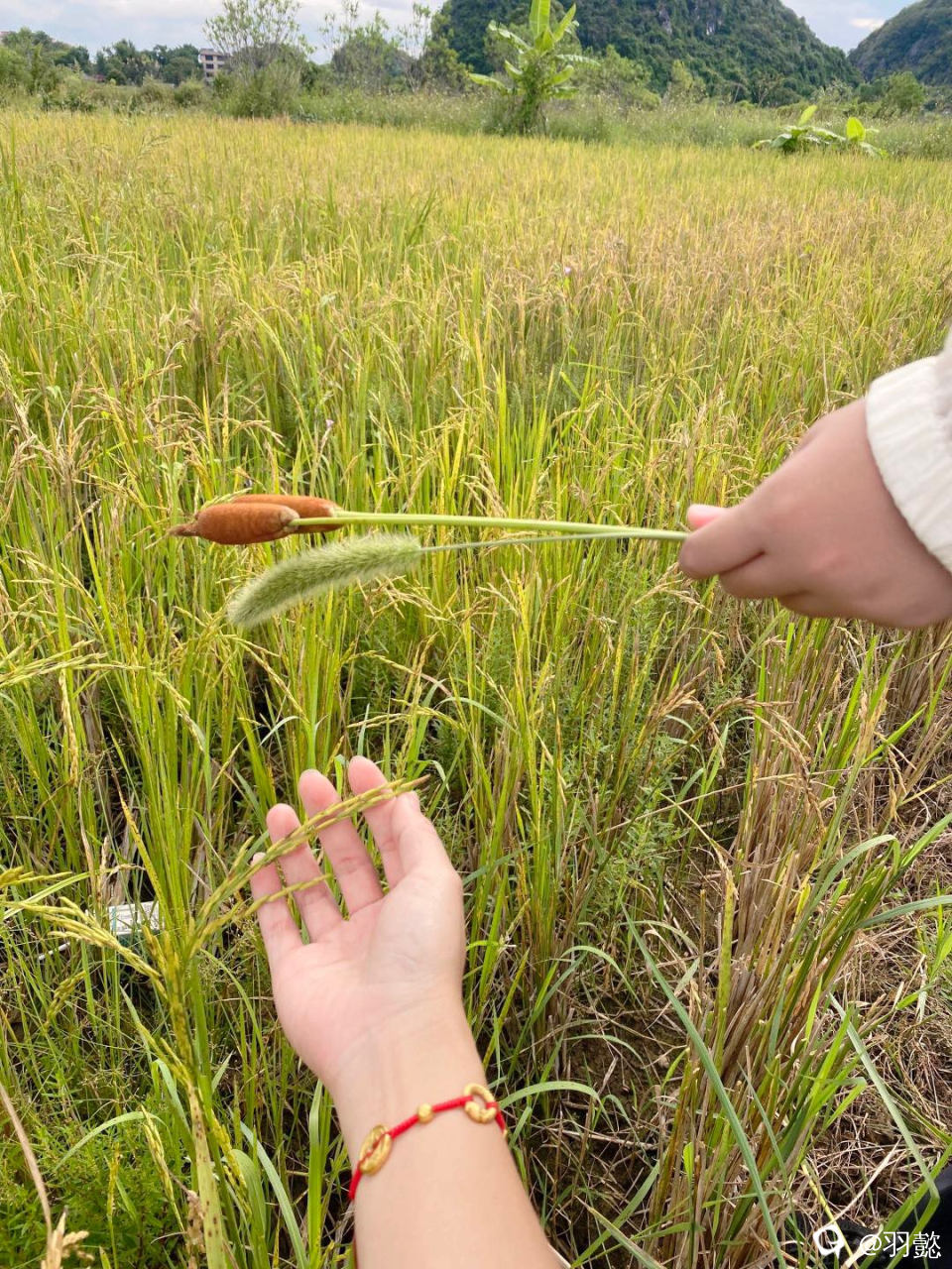 稻子也开始准备成熟 沉甸甸的垂下了腰