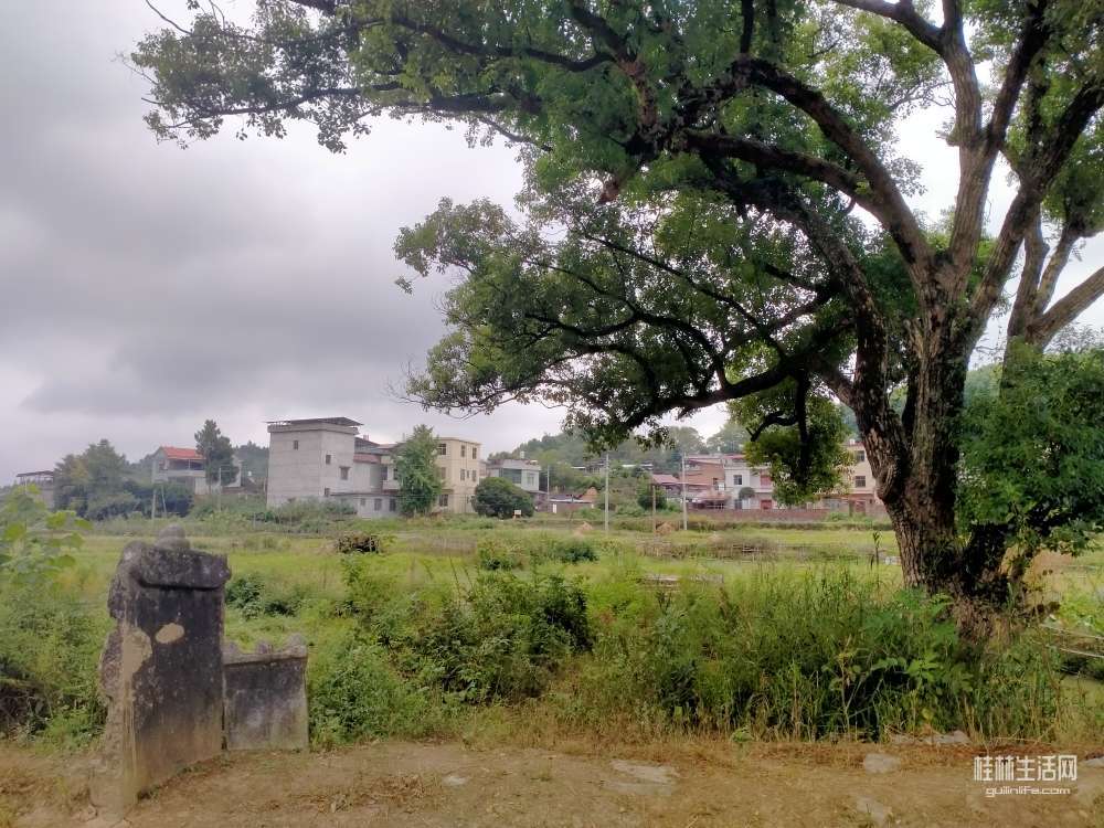 过了高峰不远,在屋仔脚公路边看到丘陵中间有几十亩平地,有一蔸古樟。