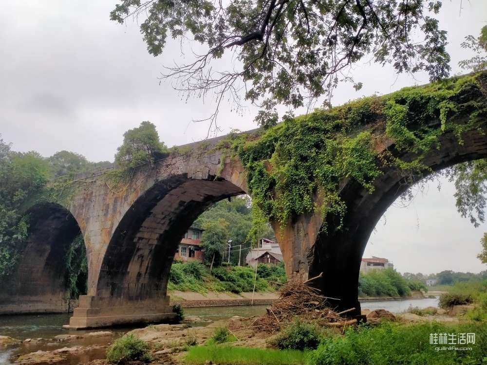 桥栏上的旧碑记载50多米长10米高的独成桥建于1944年,1951年重修。