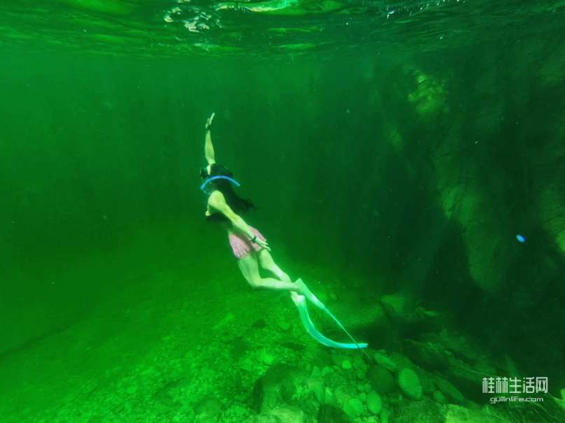 ▲ 广西少有的“果冻水”奇观,视觉与体感的双重享受 所谓“果冻水”,是指因水体富含矿物质且极尽清澈,在光线折射下呈现出如同果冻般的凝胶质感。