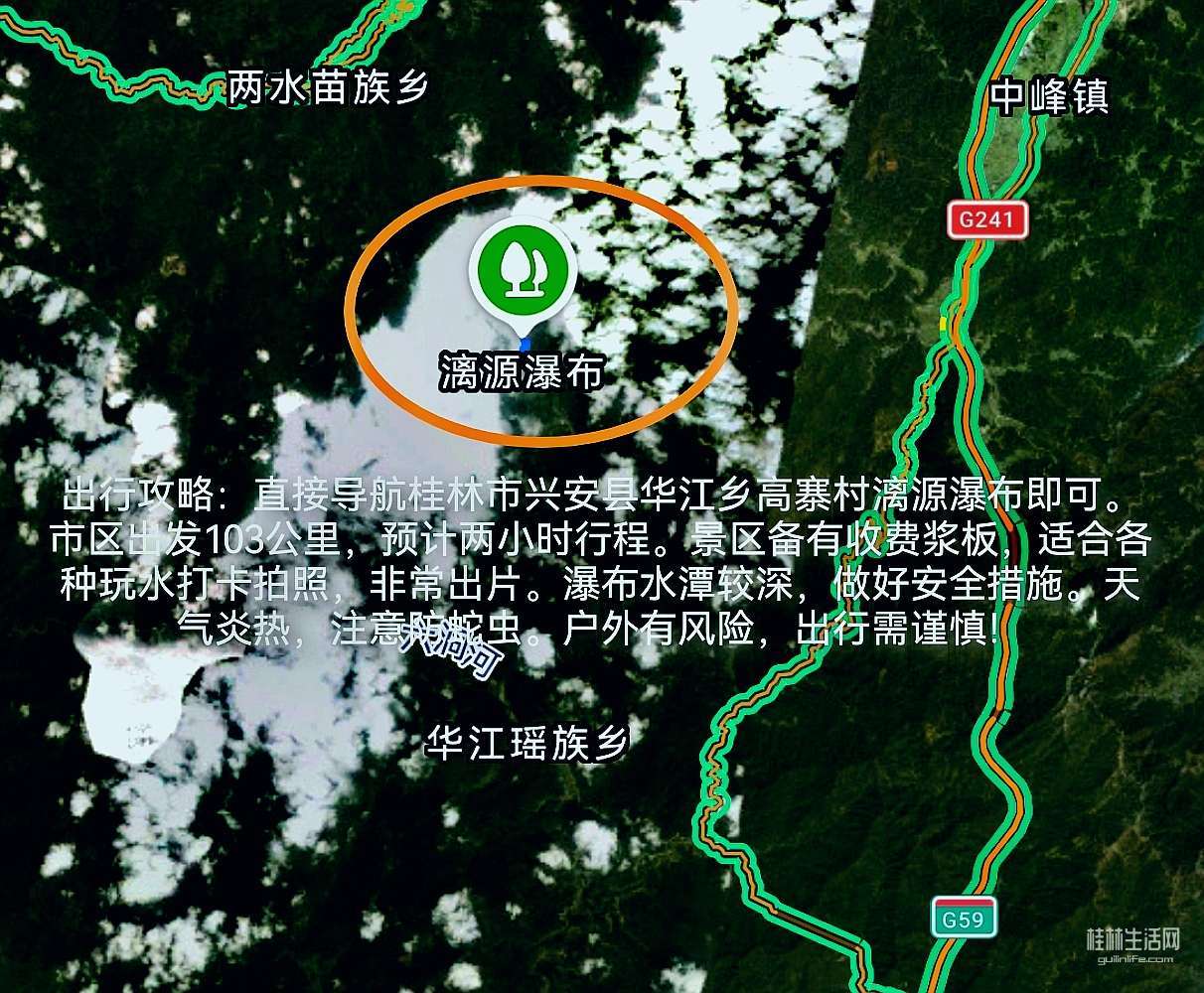出行攻略:直接导航桂林市兴安县华江乡高寨村漓源瀑布即可。市区出发103公里,预计两小时行程。