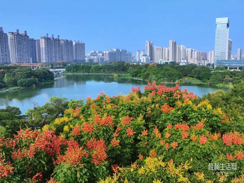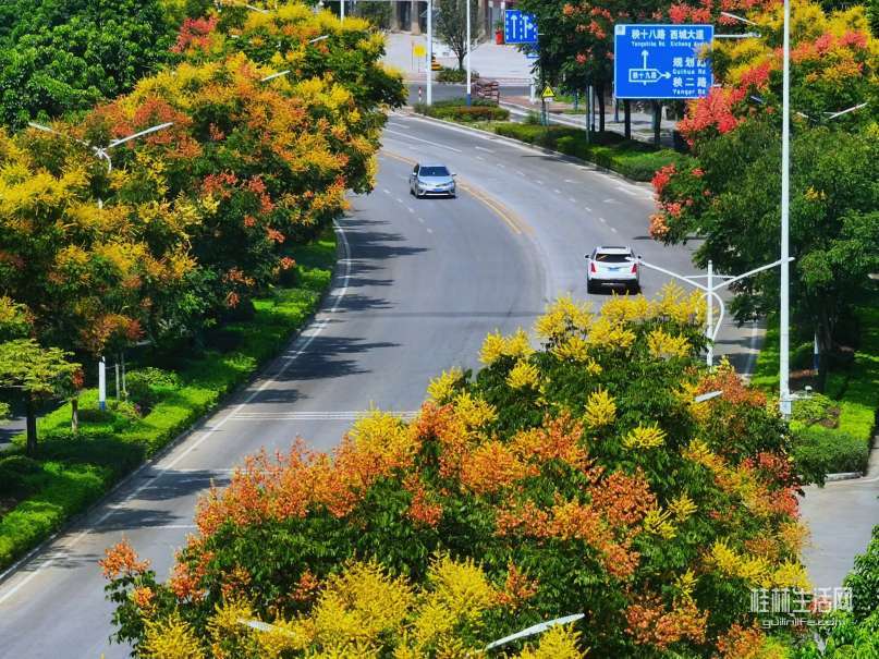 秋意渐浓,桂林临桂新区的栾树进入盛花期!金黄花朵缀满枝头,与绿叶相映成趣,一路一景皆成画。