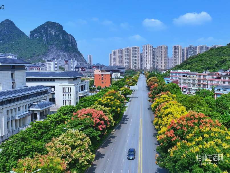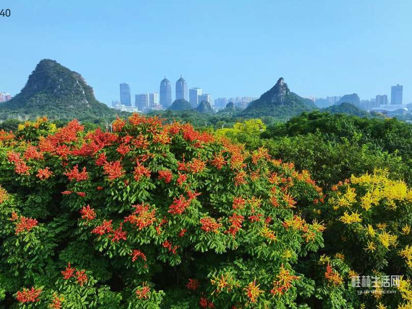 桂林市临桂新区秧六路(桂林市尚贤学校)或山水公园或洋田路,都可看到栾树花开,花树较高,建议仰拍或者是无人机俯拍。部分道路有s弯,构图非常出片。