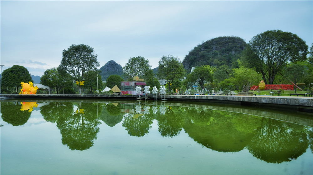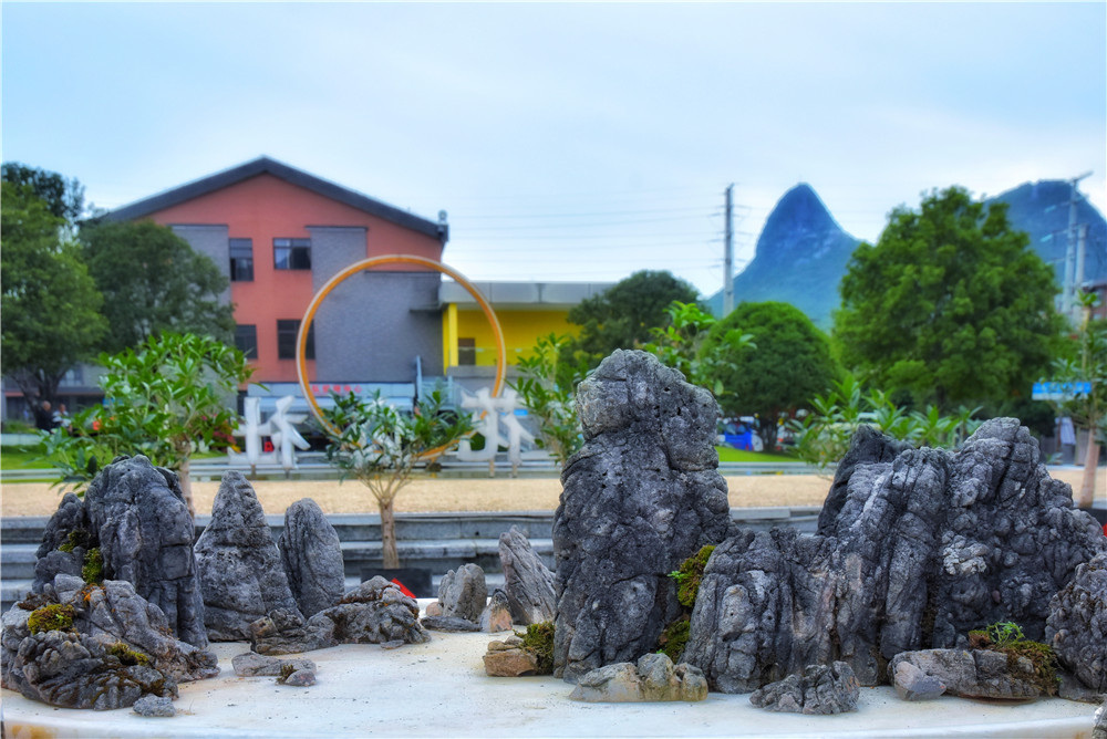骆驼山和穿山在这一盆景里同时呈现,仿佛让人置身于微缩的桂林美景之中。