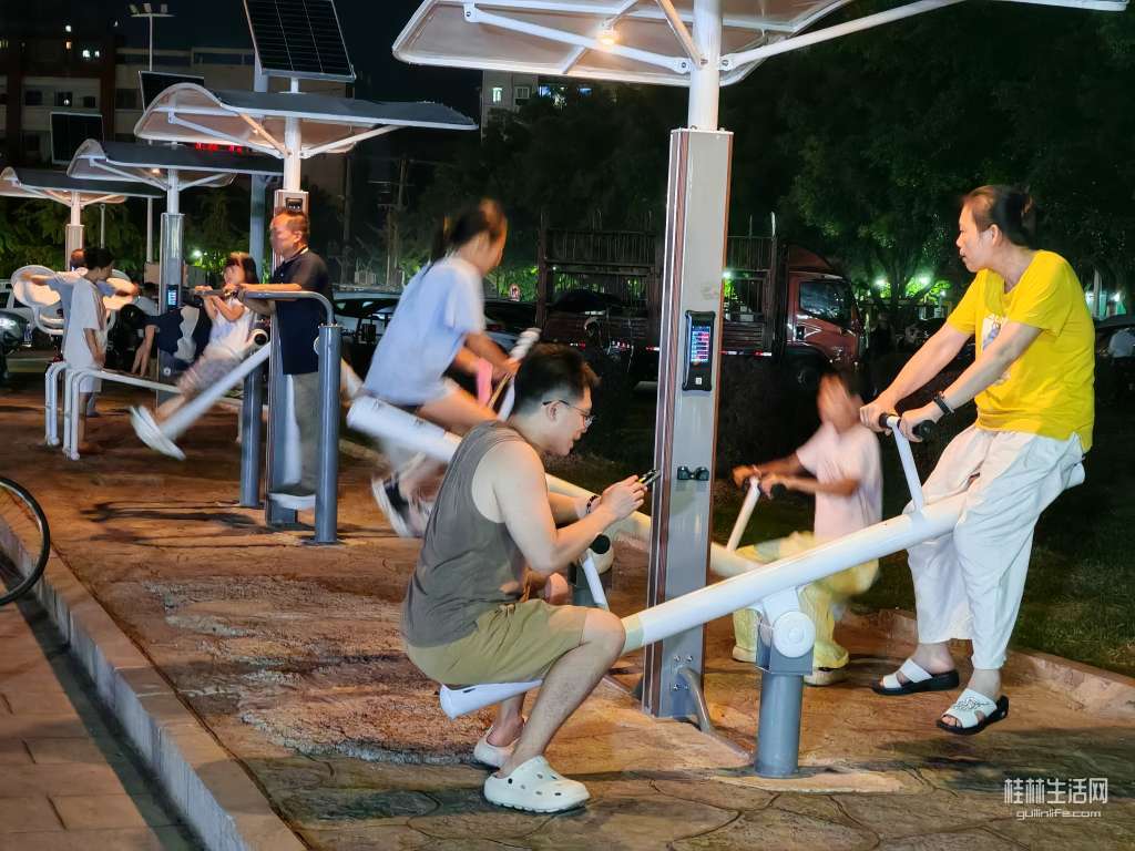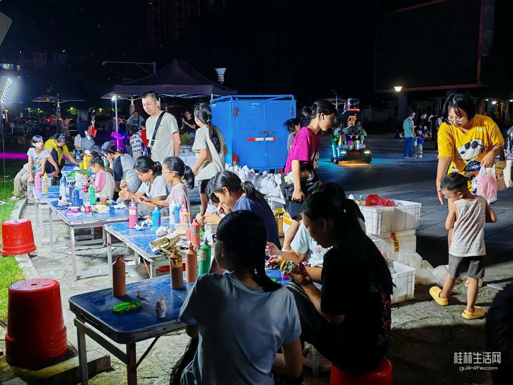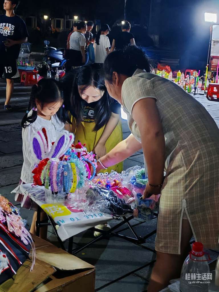 双节假日第一天之夜,灵川县滨江广场 ,人声鼎沸,各种健身运动,娱乐活动,经商活动,以及广场舞,卡拉OK等,不一而足,是现出一派节日气氛。