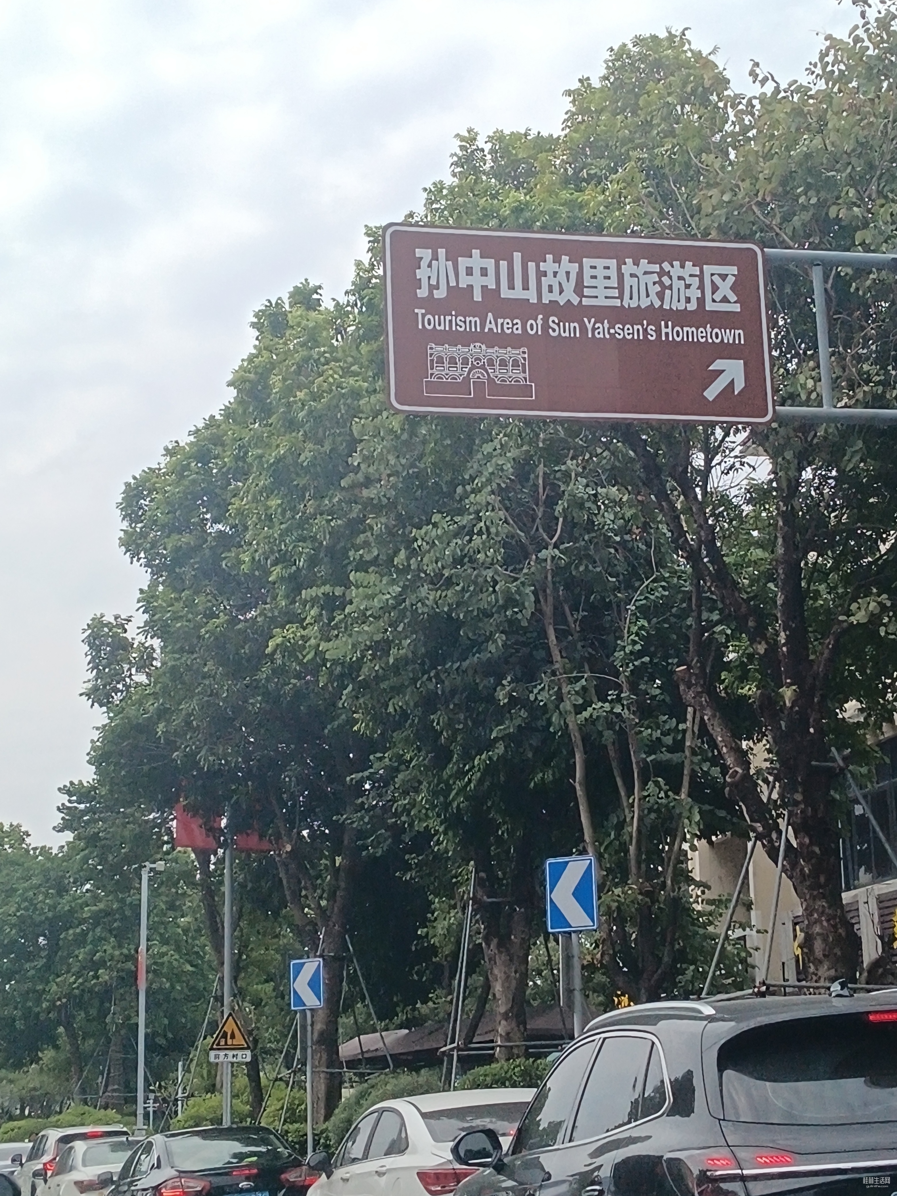 进入翠亨景区,车流滚滚,有点小拥堵。