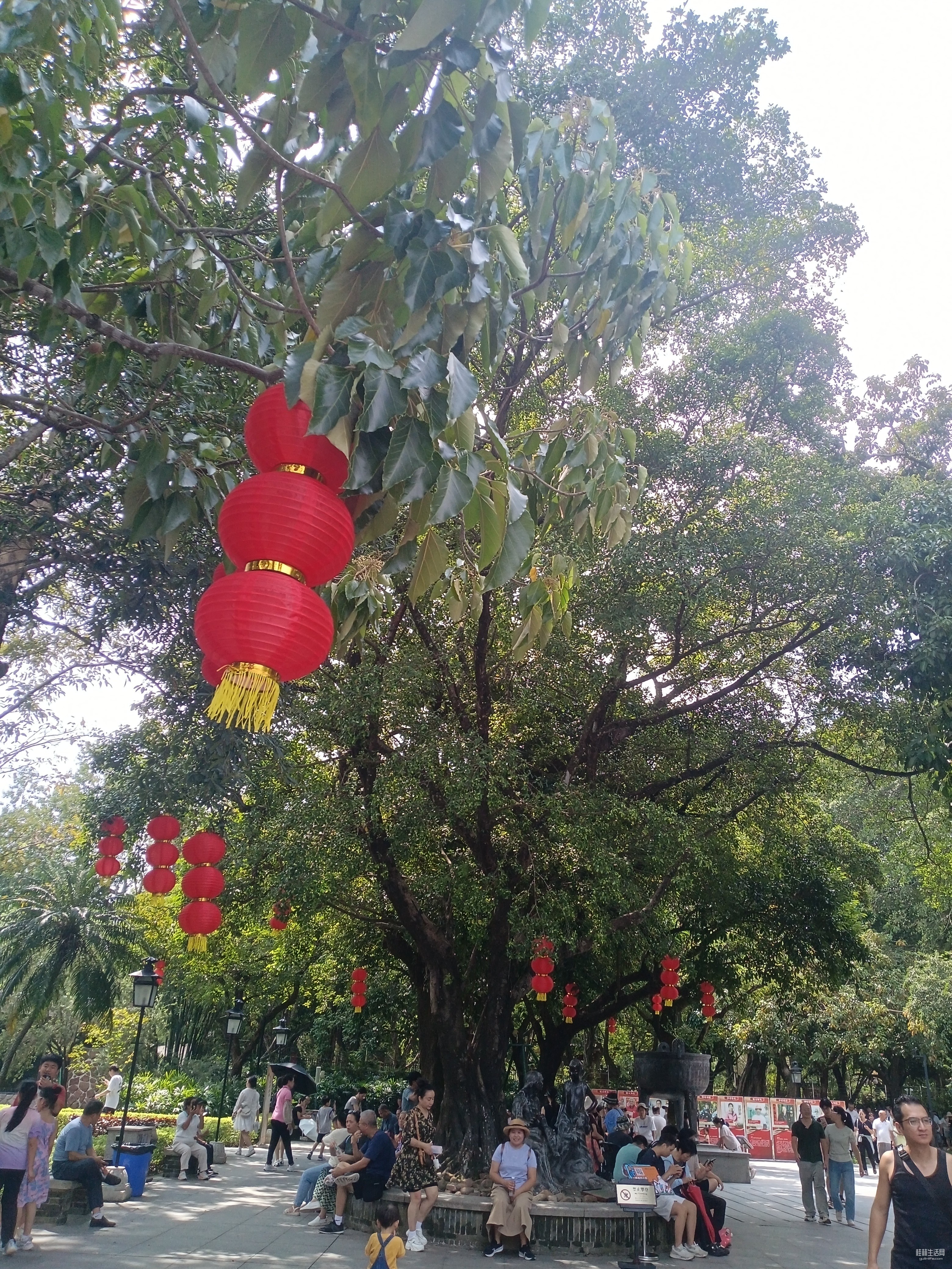 翠亨村景区,树木参天,到处植被郁郁葱葱,大红灯笼高高挂,游客如织。
