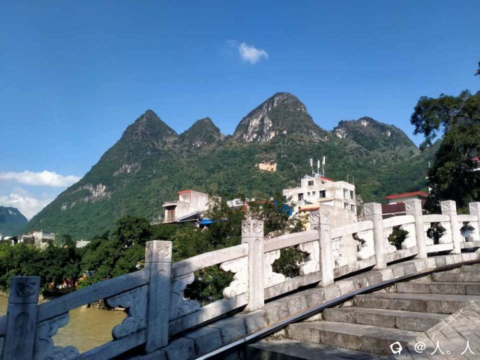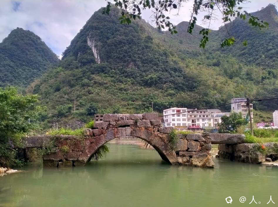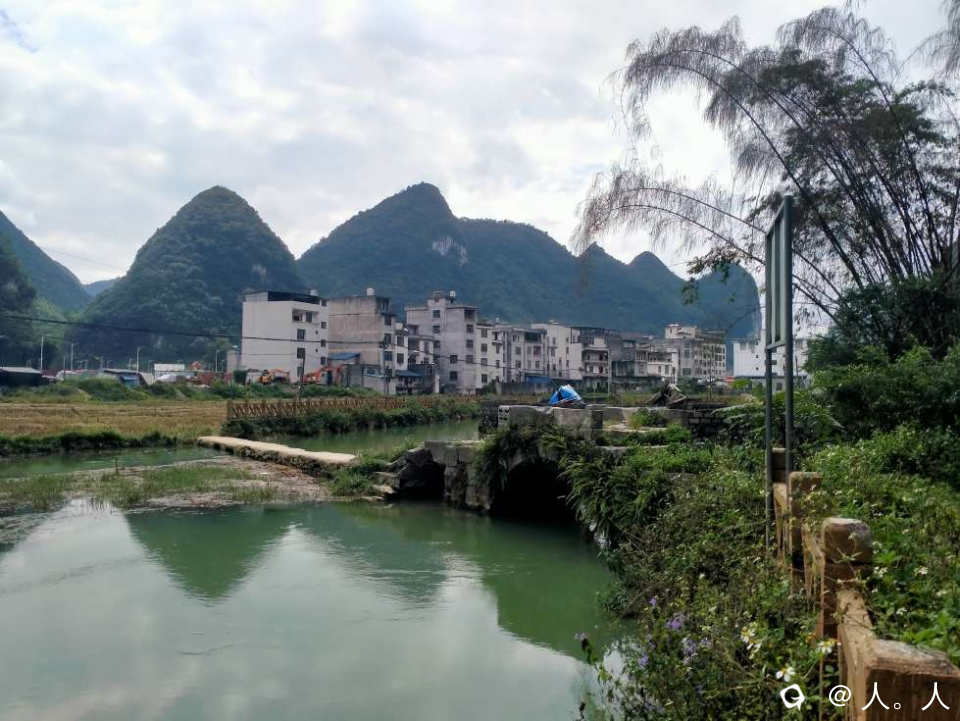 乐业县城旁边的平寨村石拱桥有点古韵。
