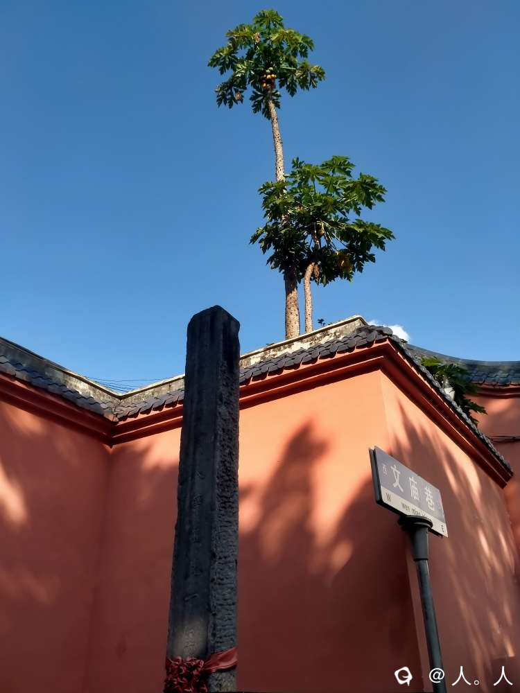 那蔸结了十几个果实的木瓜树也很奇特——长那么高是不想给人摘?