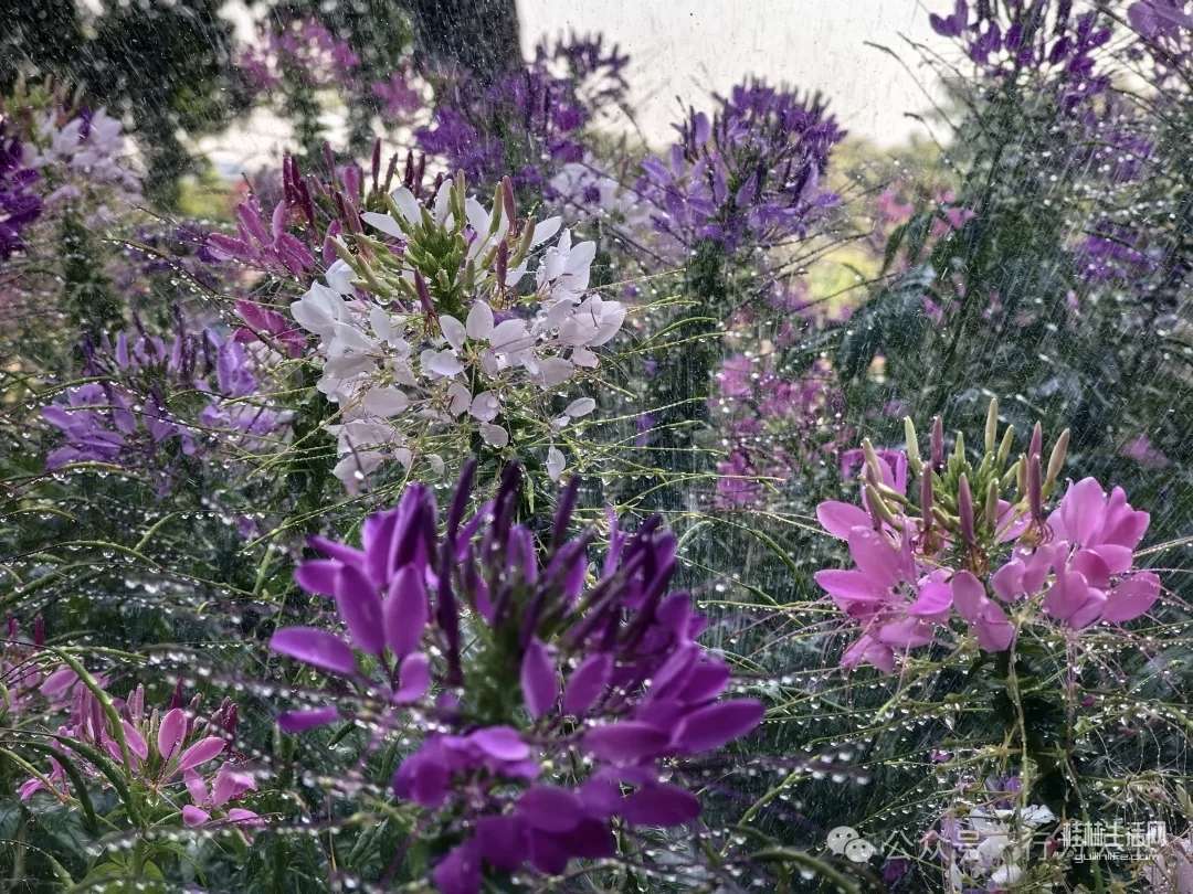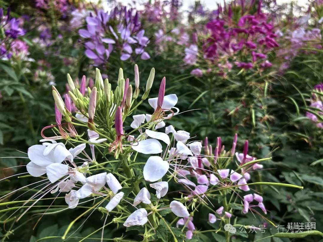盛开的醉蝶花,总状花序形成一个丰满的花球,朵朵小花犹如翩翩起舞的蝴蝶。
