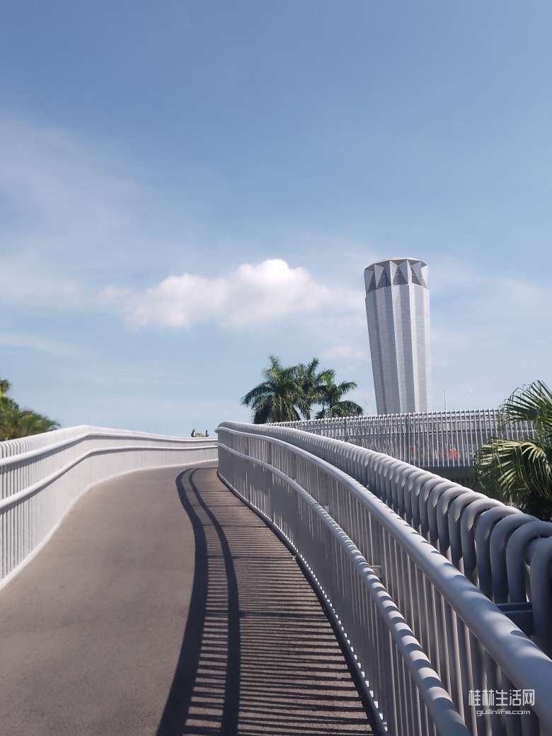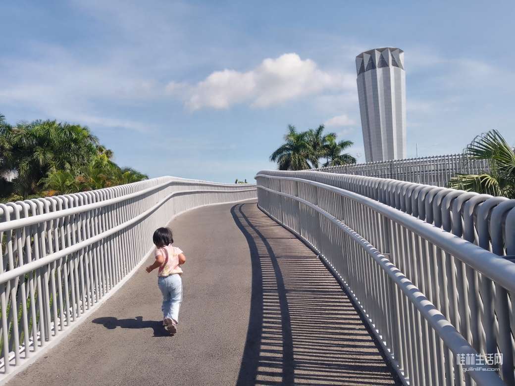 这个公园现在被一条马路分成了两半,从这个桥上可以去到对面……