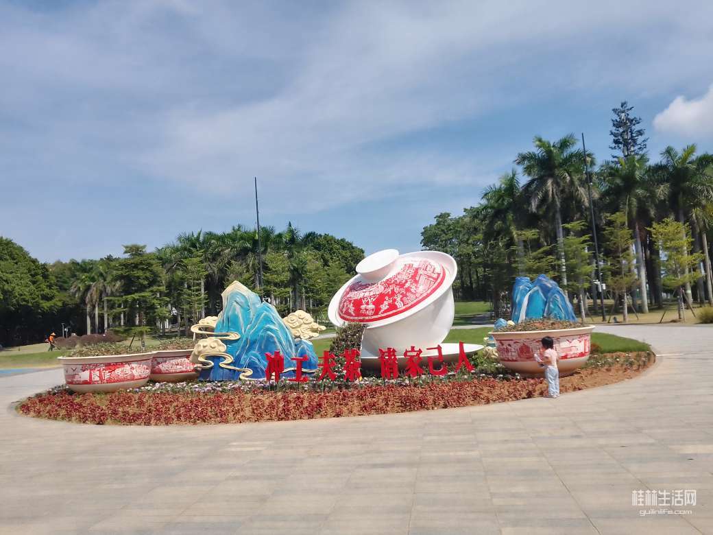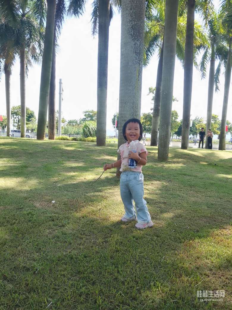 带着小朋友在路边坐了辆观光车去华侨公园……