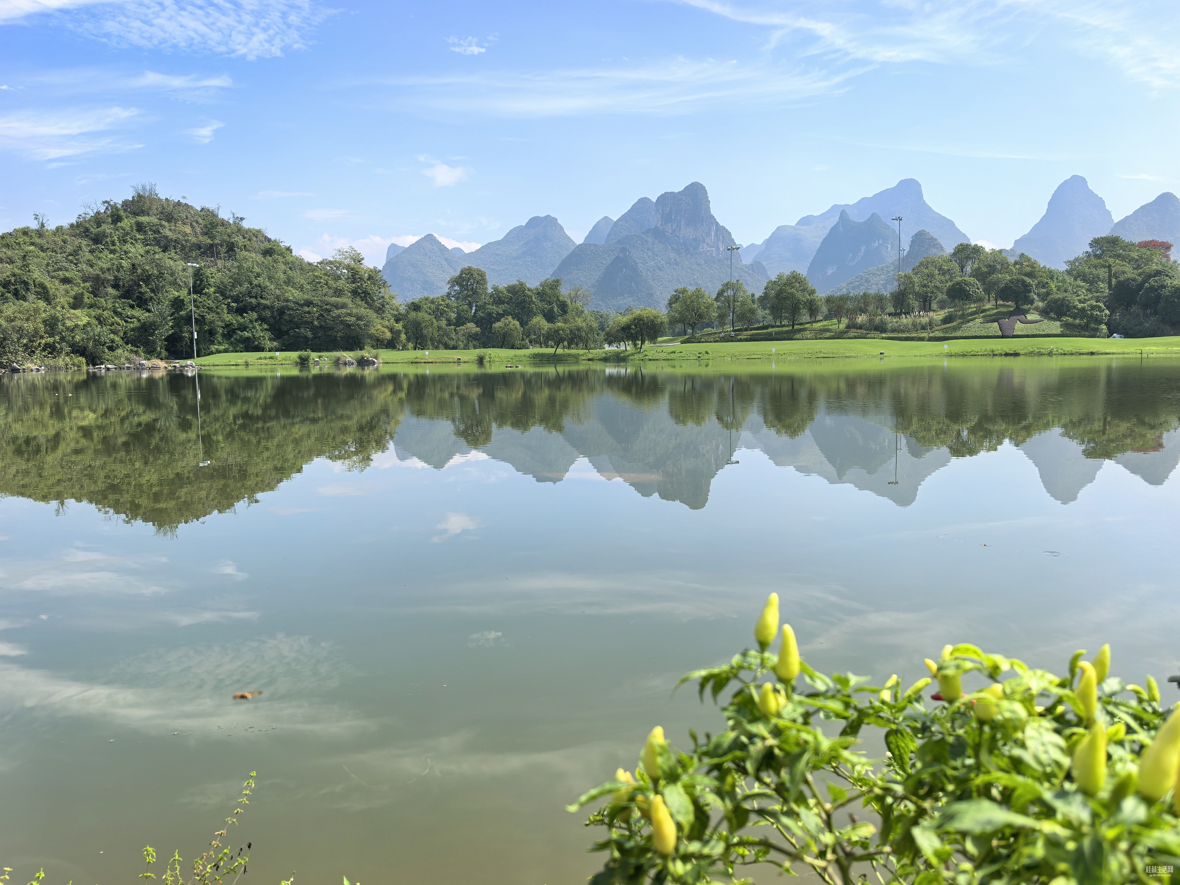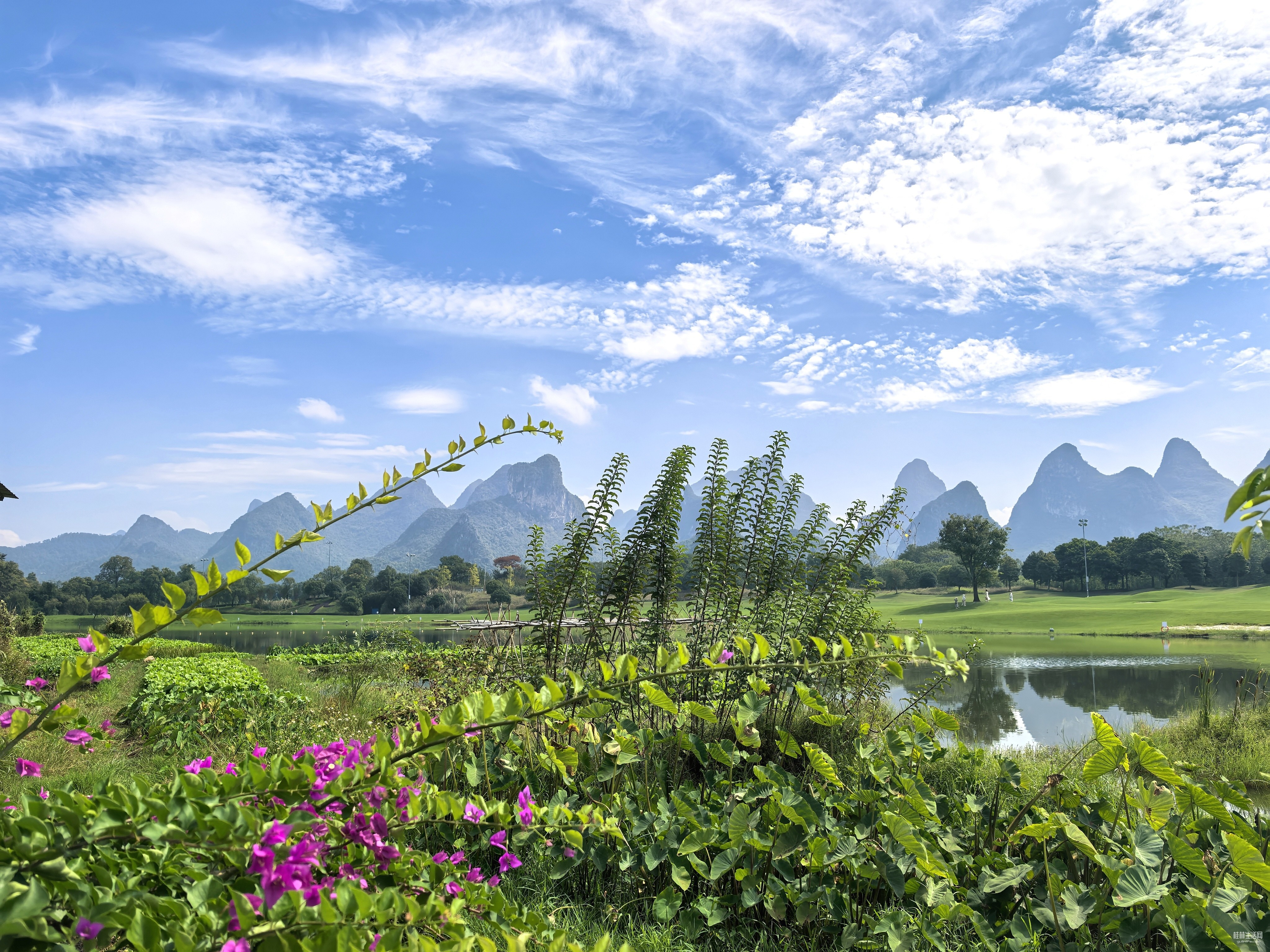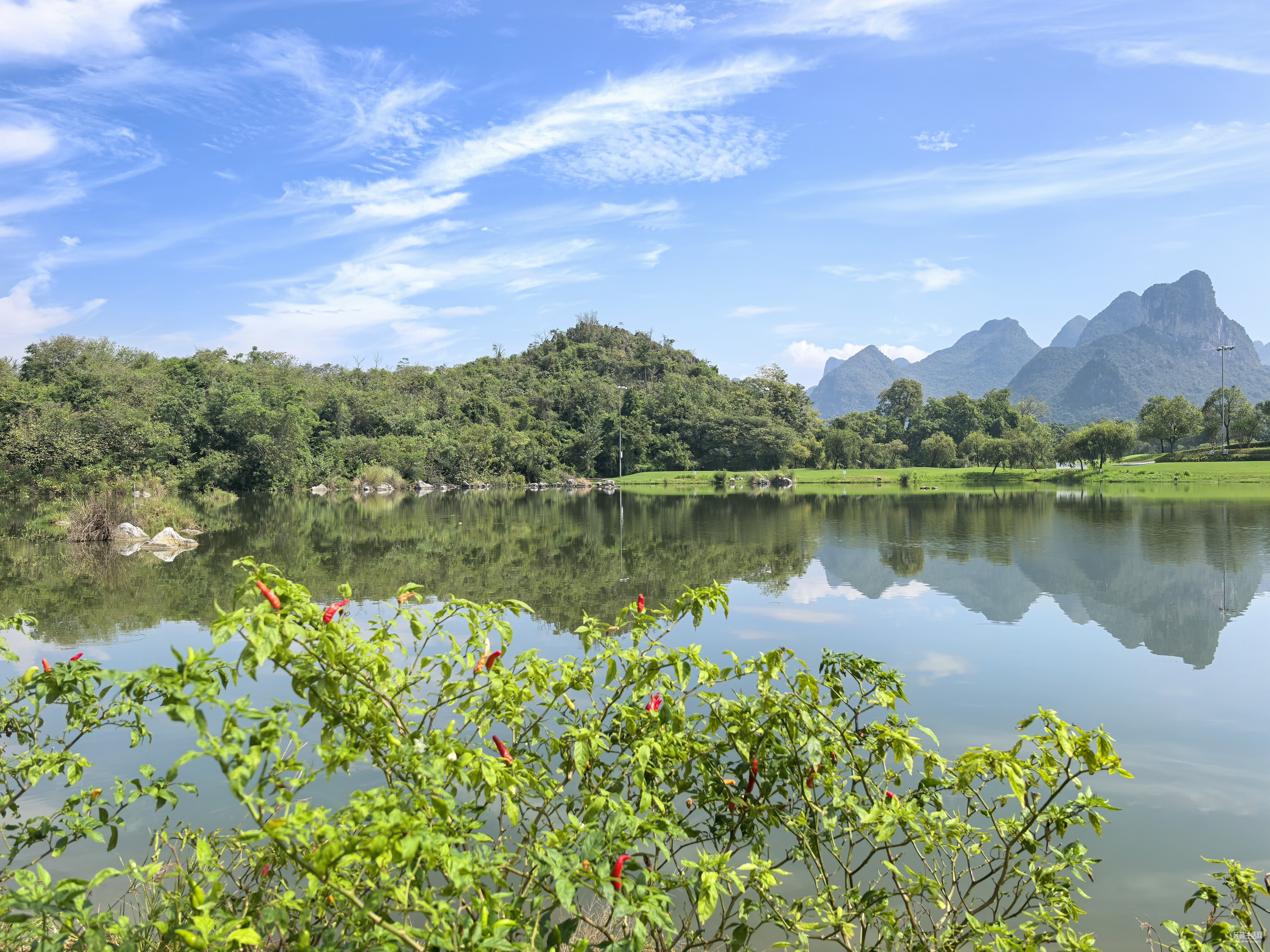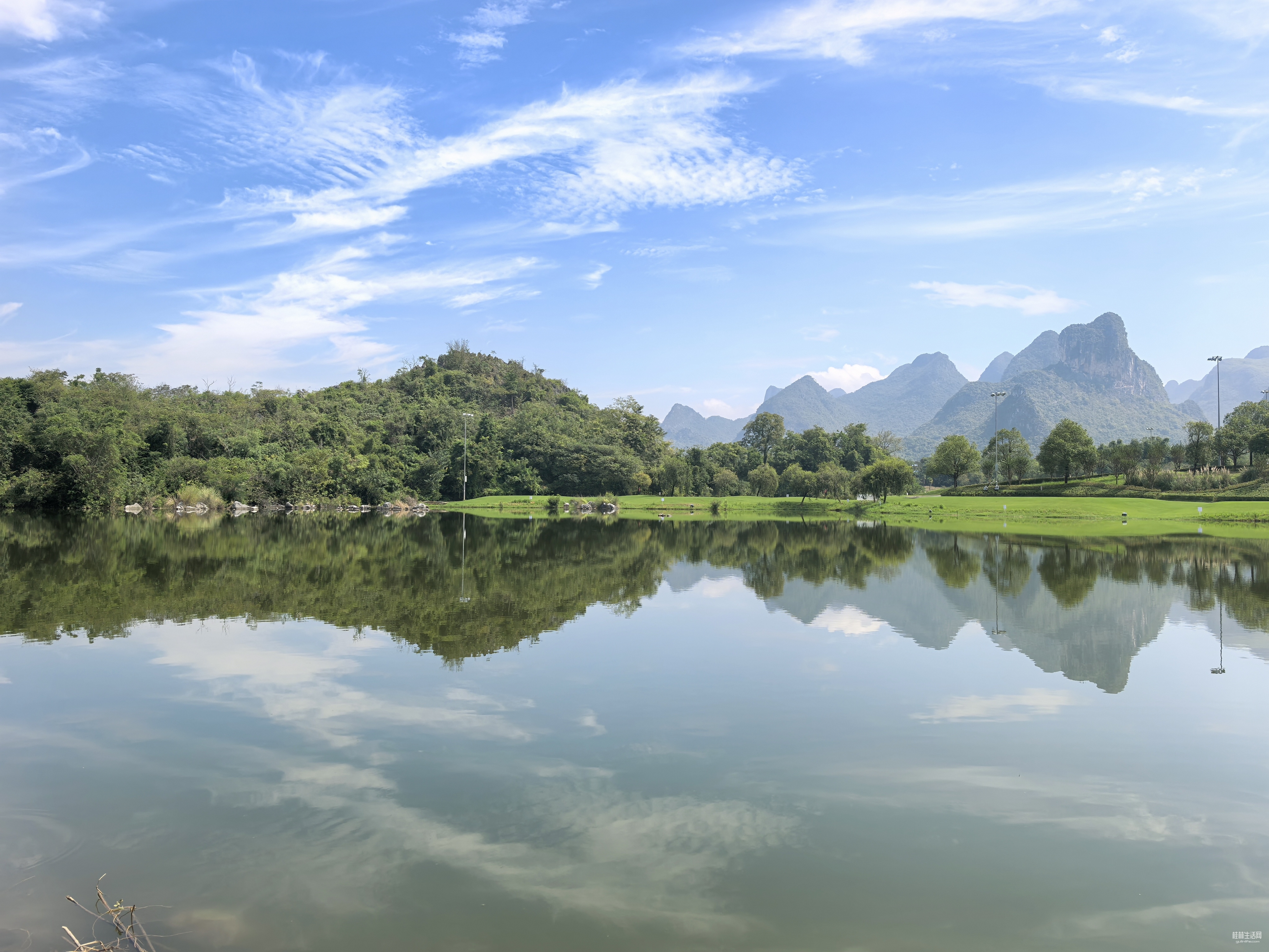 站在河对岸向远方遥望,水面与天际仿佛连在一起;分不清哪片是天上的云,哪片是水中的影;而当这山与水的相遇,便有了最动人的自然风光。