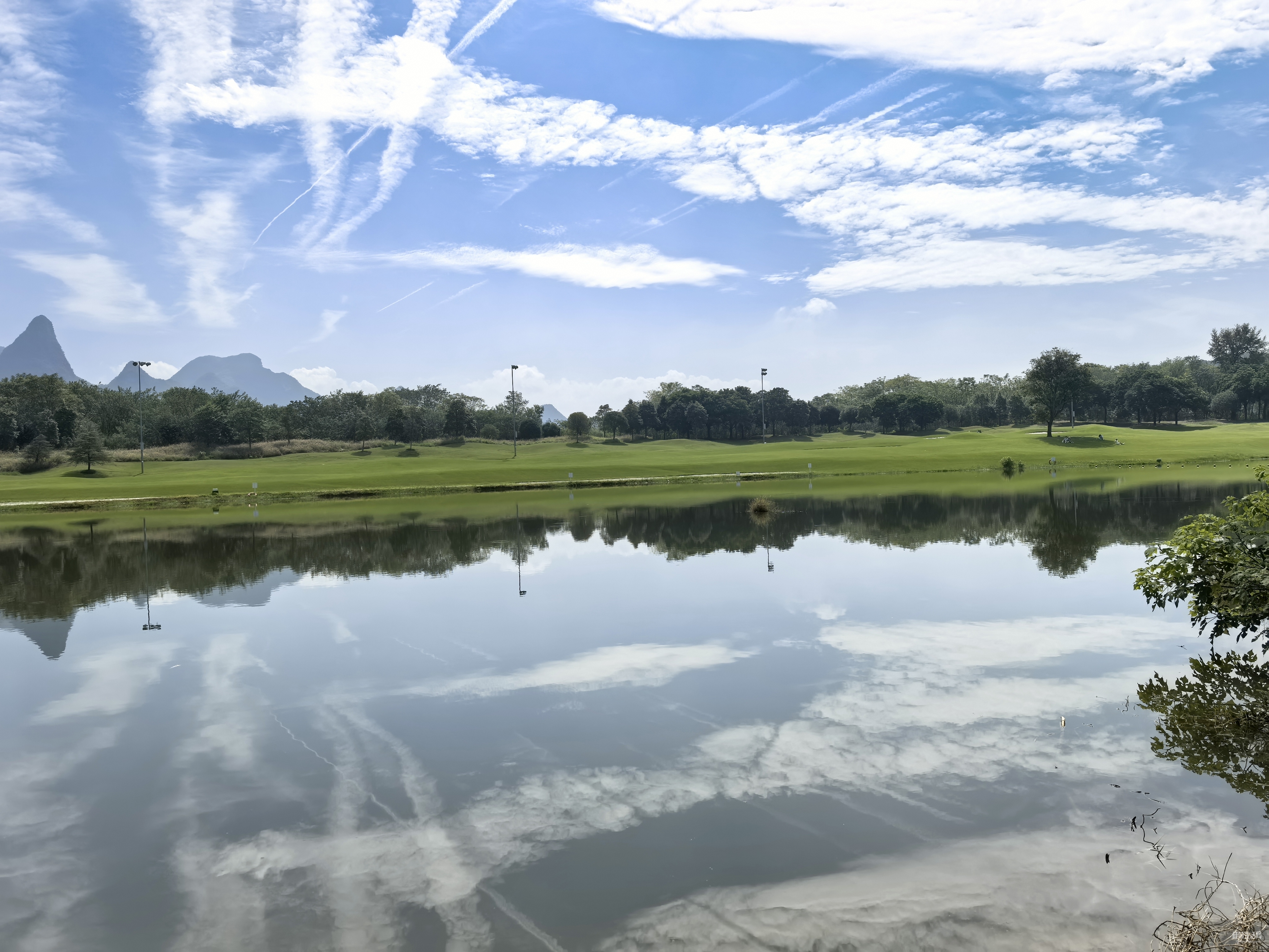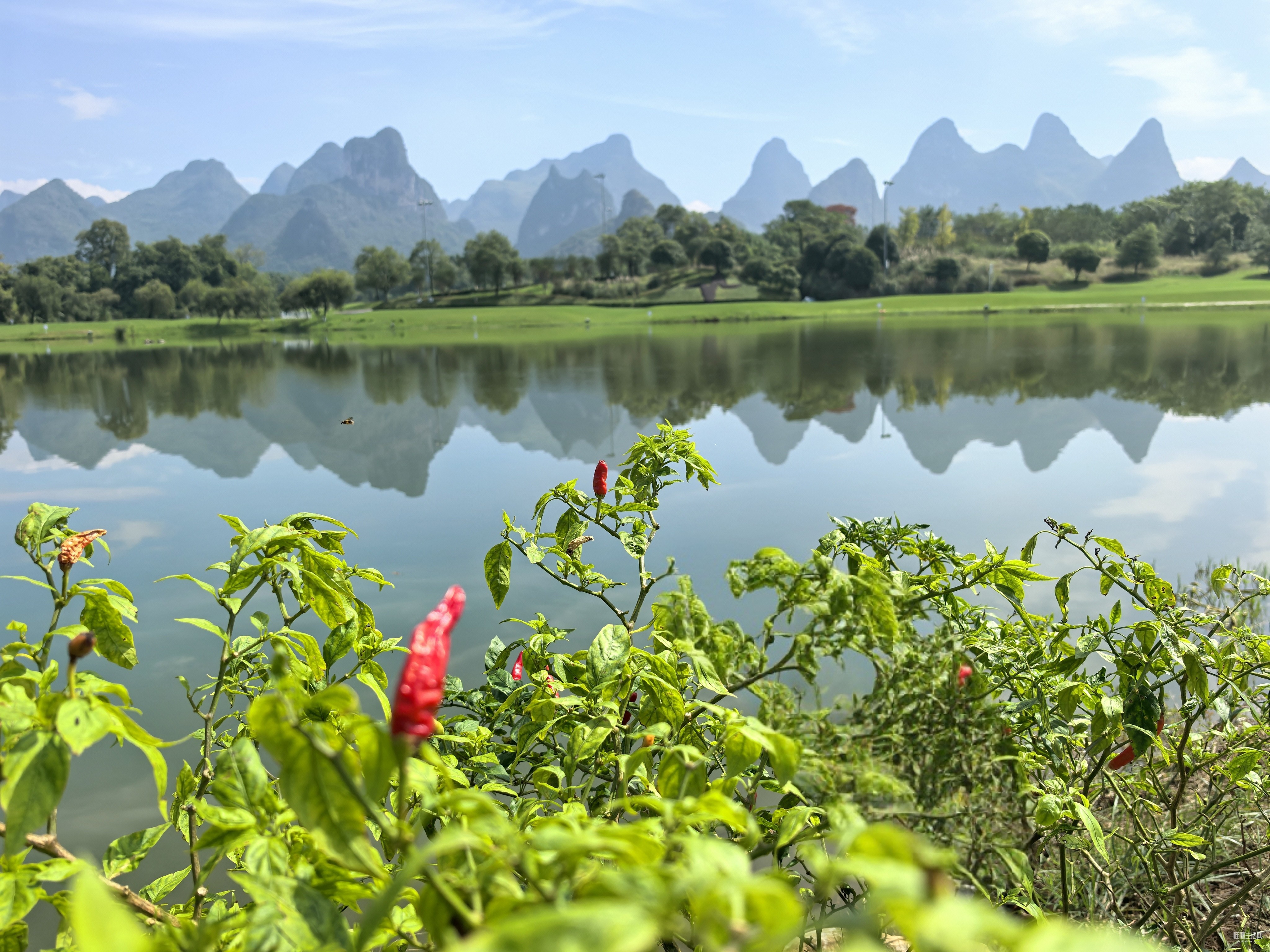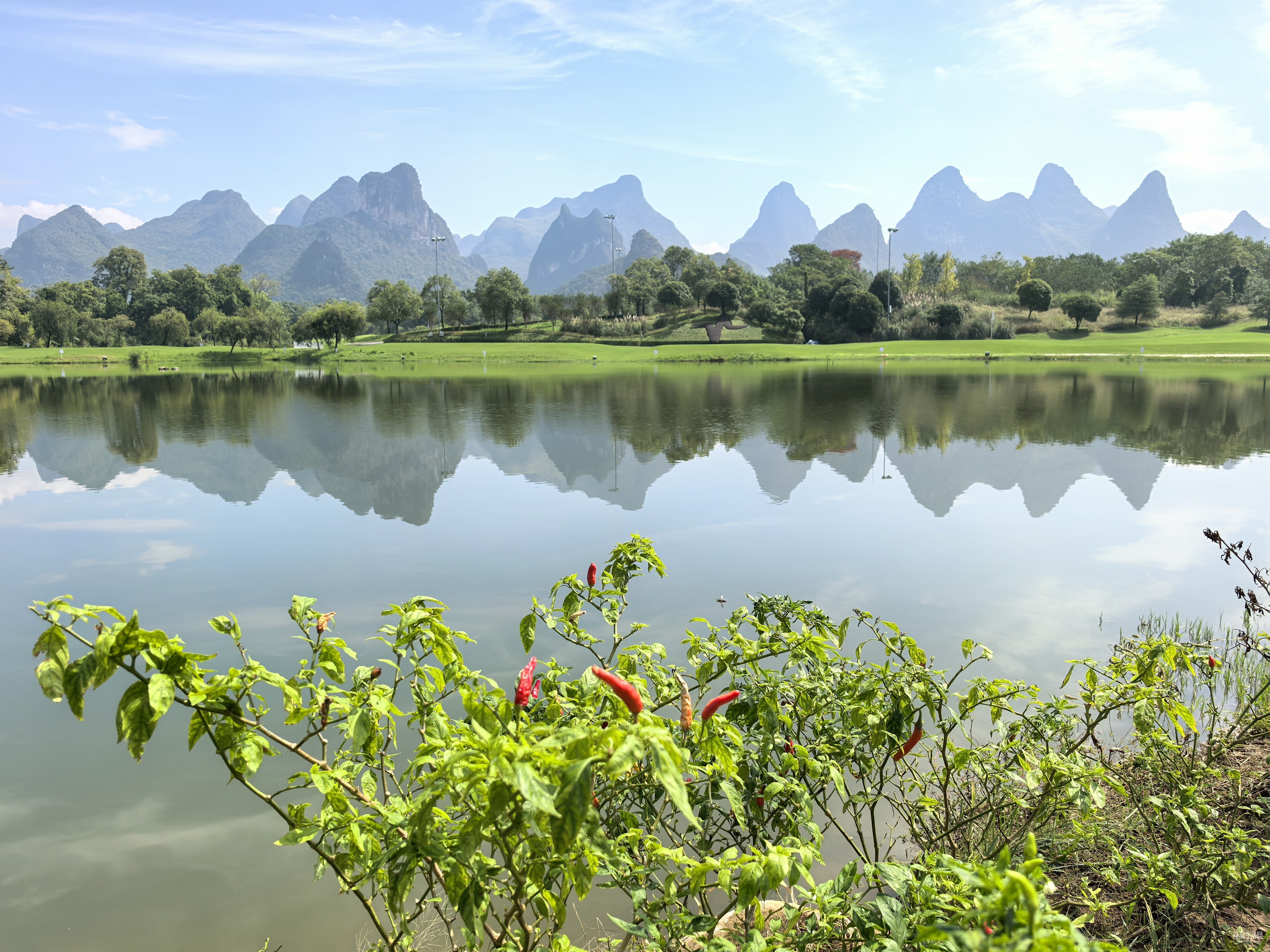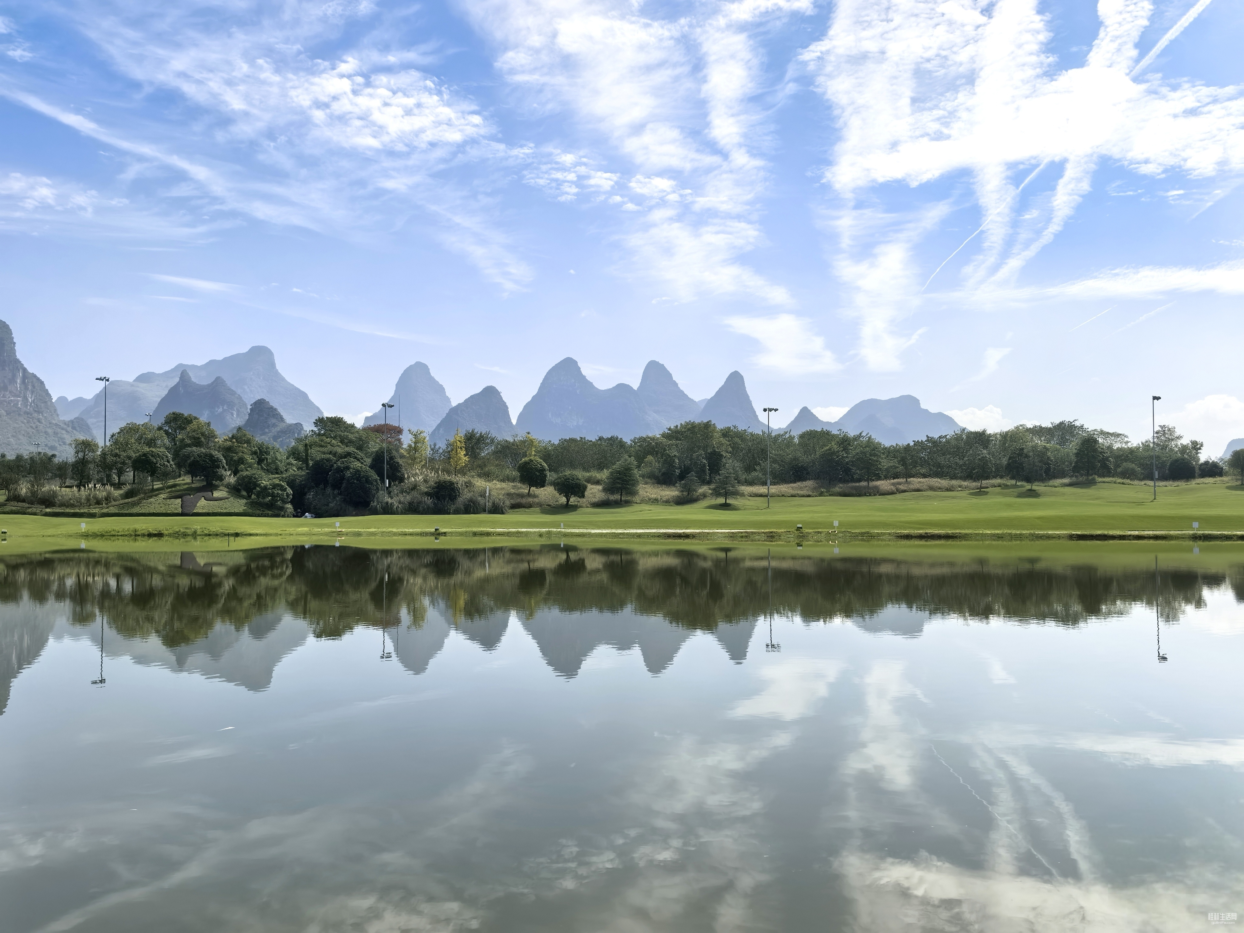 站在河对岸向远方遥望,水面与天际仿佛连在一起;分不清哪片是天上的云,哪片是水中的影;而当这山与水的相遇,便有了最动人的自然风光。