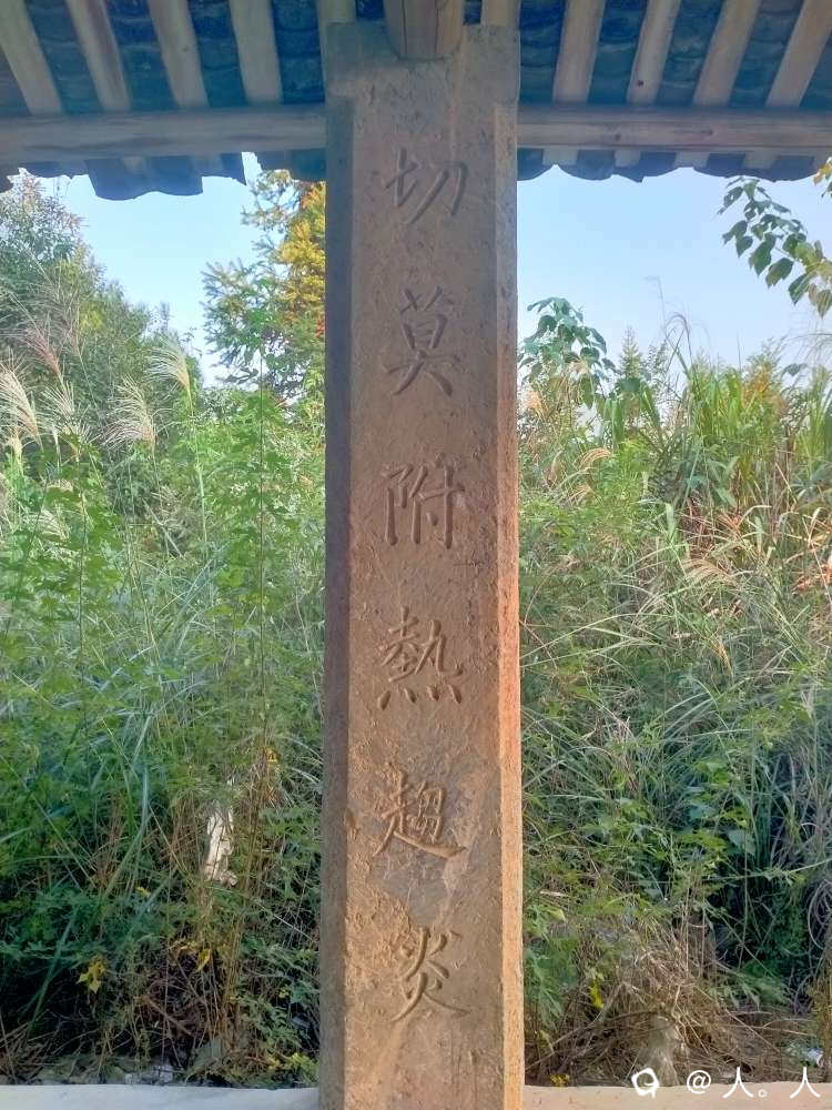 寡婆桥到寿雁镇的路边一座石柱凉亭,上面有几条强烈生活色彩的石刻对联。