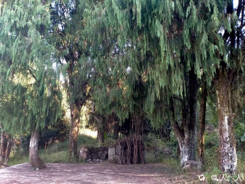 村里人告诉我山坳上有个塌了一半的凉亭,走到几棵古柏下的泉井处,看到前方小路实在太蒙,决定撤退。
