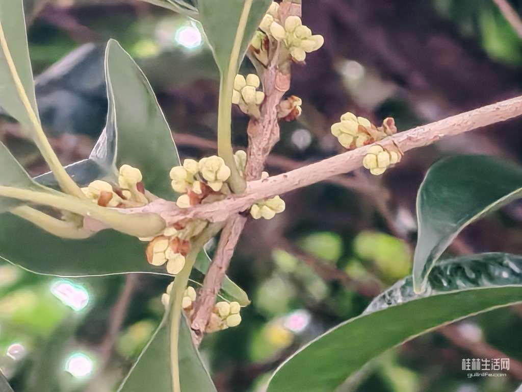 细看道旁的桂花树,你会惊喜地发现,会有那么一棵或几棵的枝头,桂花或含苞待放,或已绽放吐蕊,幽香扑鼻。