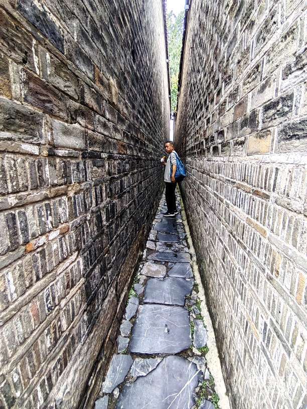杨振宁故居右侧是一条不足一米的小巷,邻居的大门正对杨振宁家的侧面墙,让人费解